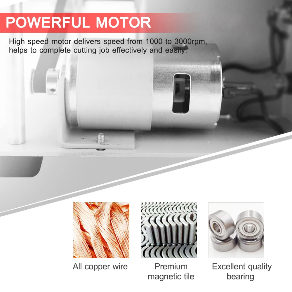 Мощный двигатель-- Высокоскоростной двигатель обеспечивает скорость от 1000 до 3000 об/мин, поддерживает глубину резки до 40 мм, помогает эффективно и легко завершить работу по резке.
