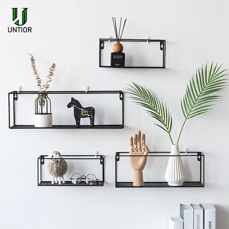 1. Простая настенная полка, идеальное сочетание кованых железных панелей для хранения.