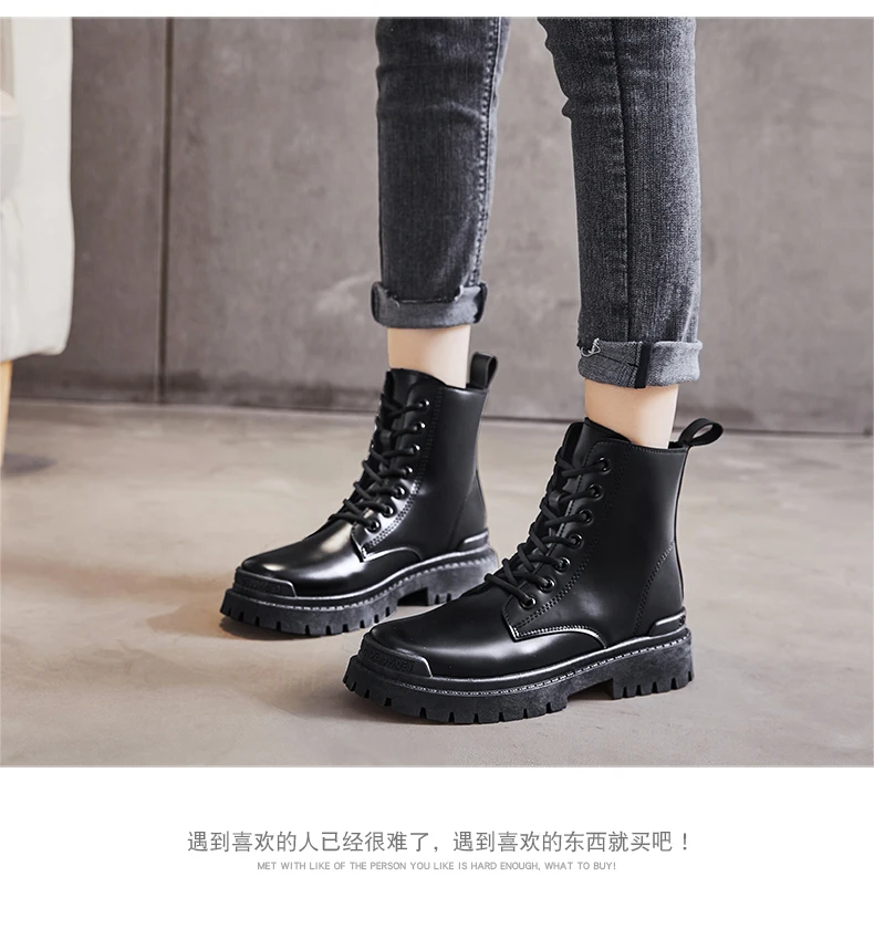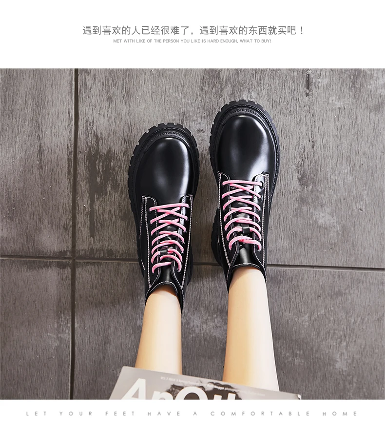 Новинка 2020 года; Botas; Женские ботильоны в байкерском стиле; Женские весенние кожаные оксфорды на платформе со шнуровкой; Цвет Черный; Женская обувь; Botas Mujer