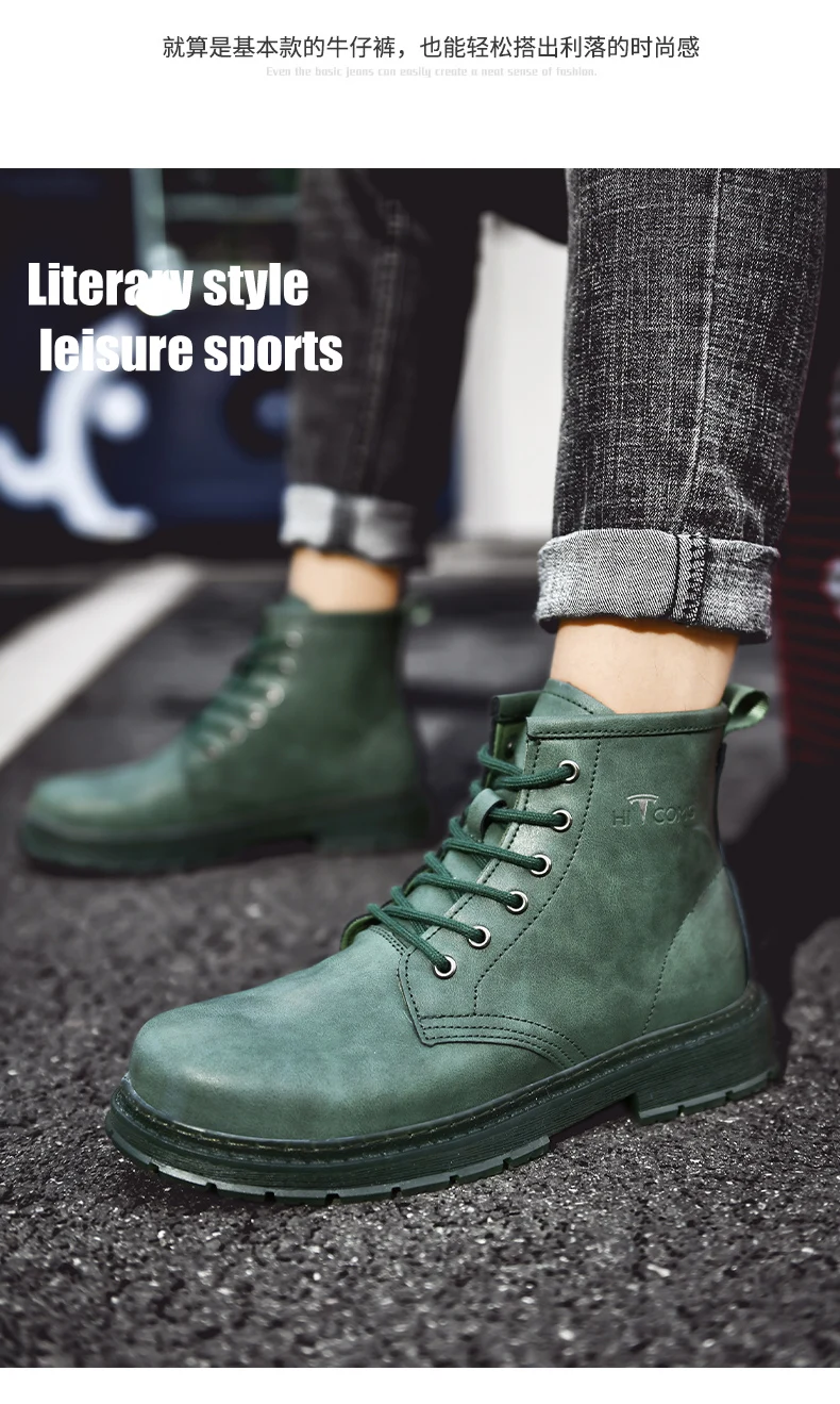 Новинка 2020 года; Coturno; Мужская кожаная обувь с высоким берцем; Модные зимние теплые ботинки; Мотоботы; Ботинки Martin; Ботинки зеленого цвета