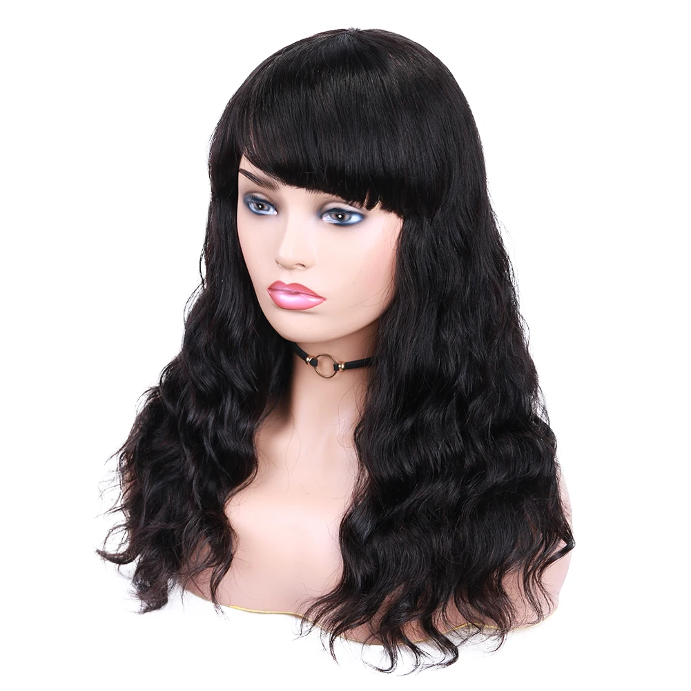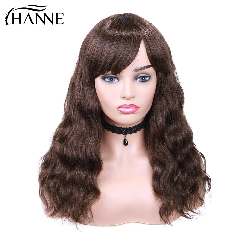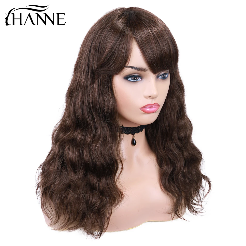 Волосы HANNE бразильские человеческие волосы парики естественная волна Remy парик с челкой натуральный черный цвет для черных женщин