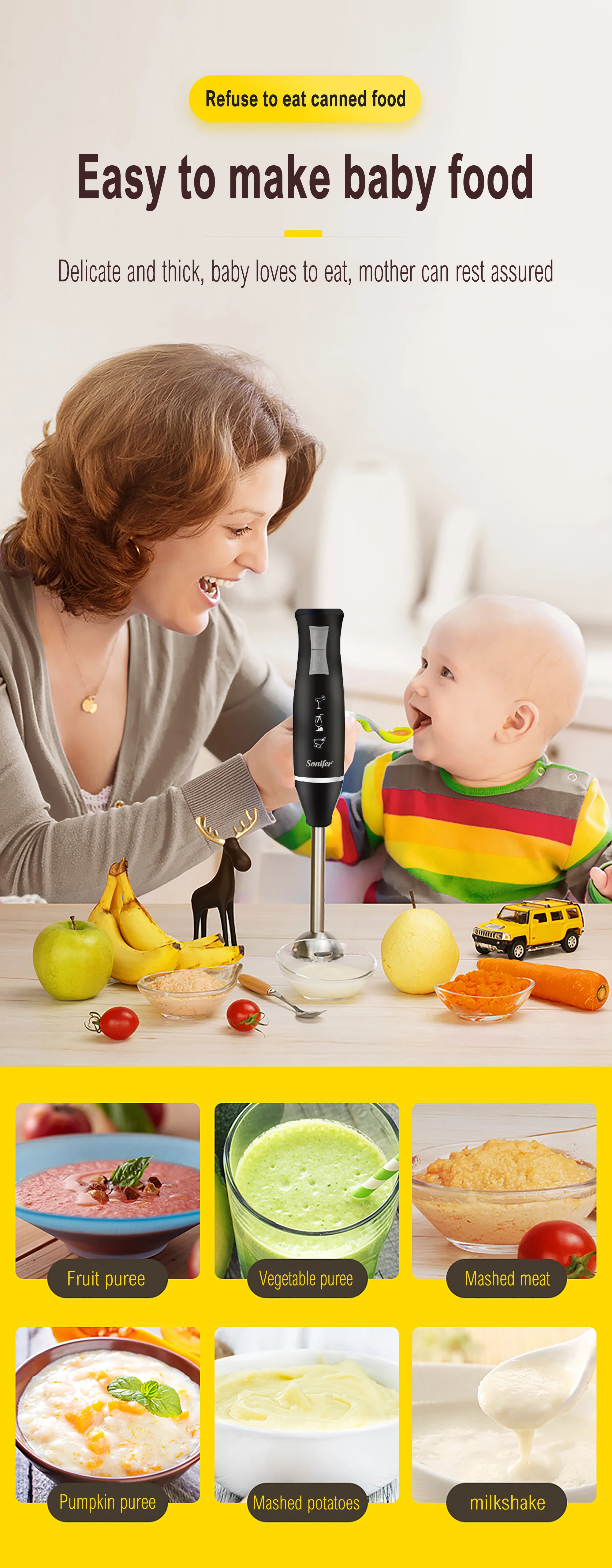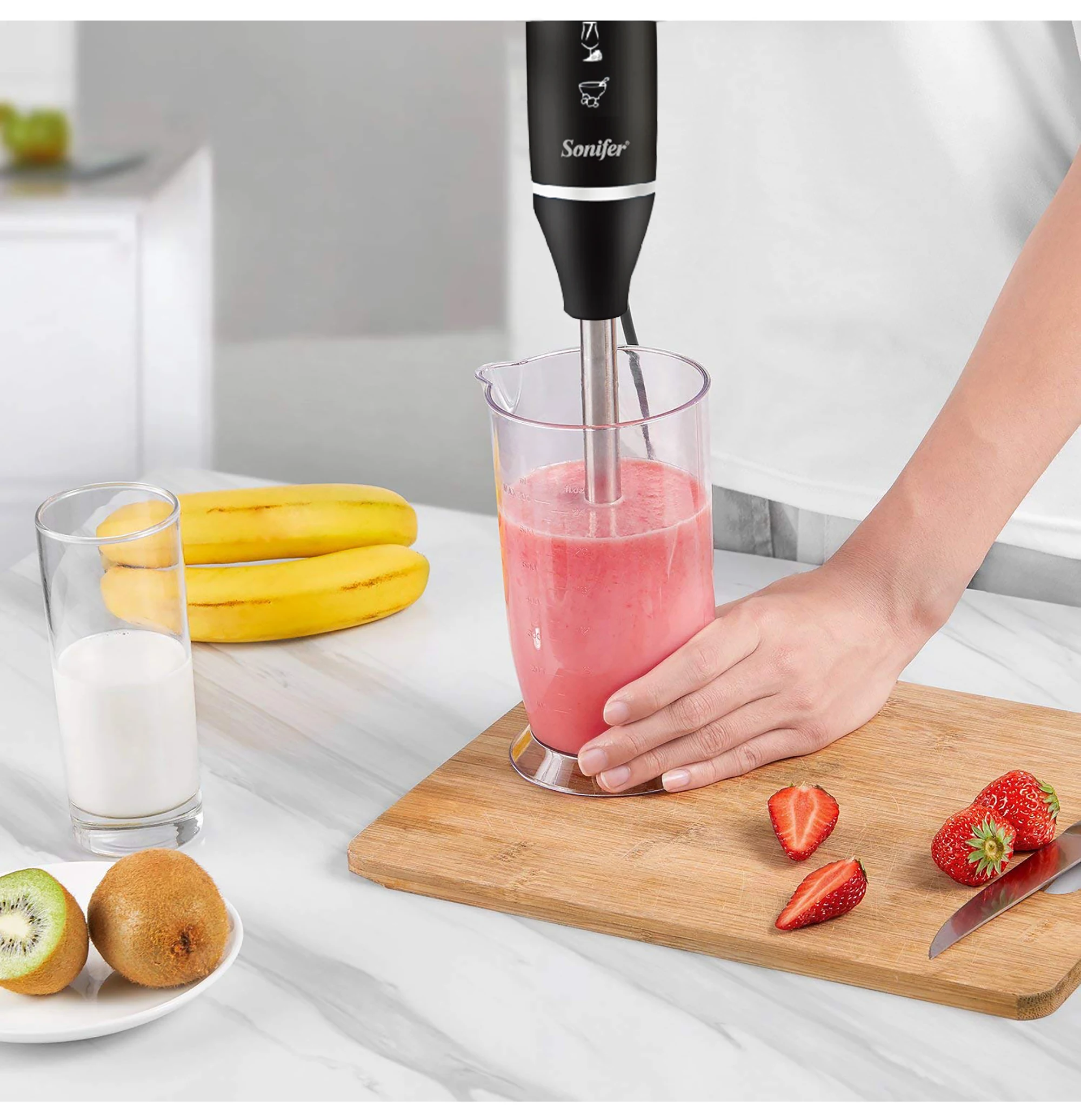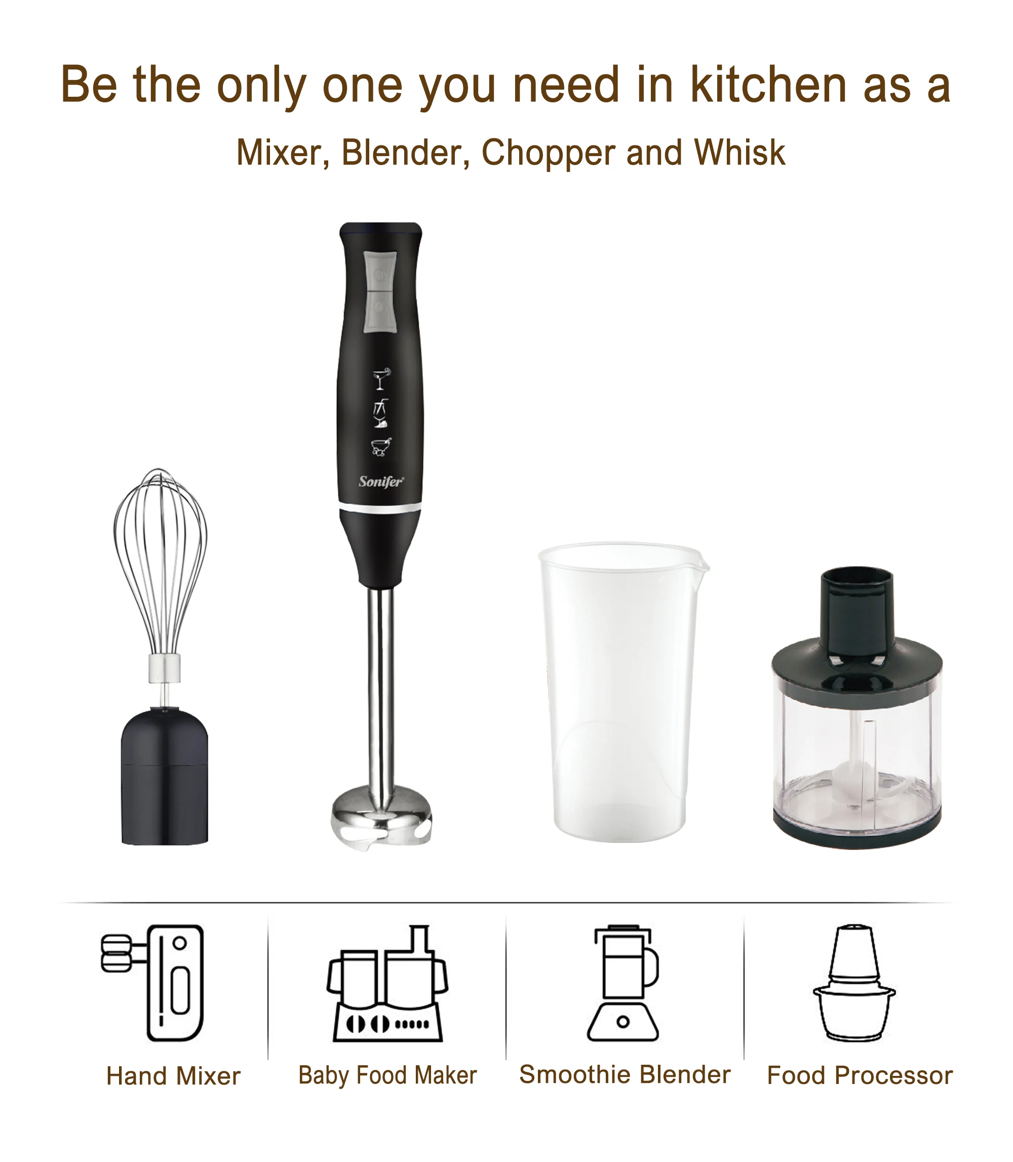 2 speeds SUS 304 Detachable blending rod 700ml measuring cup D/C motor Stainless steel blending blade With chopper & whisk 220-240V~50/60Hz 400W