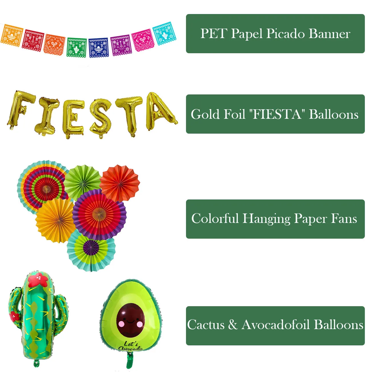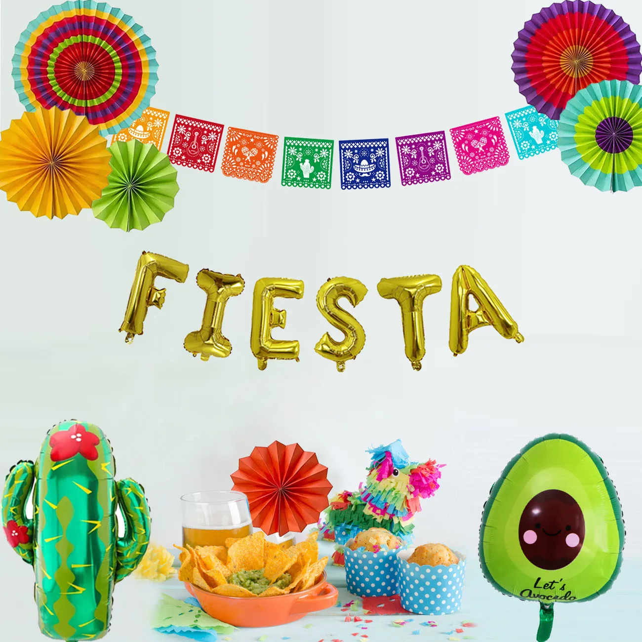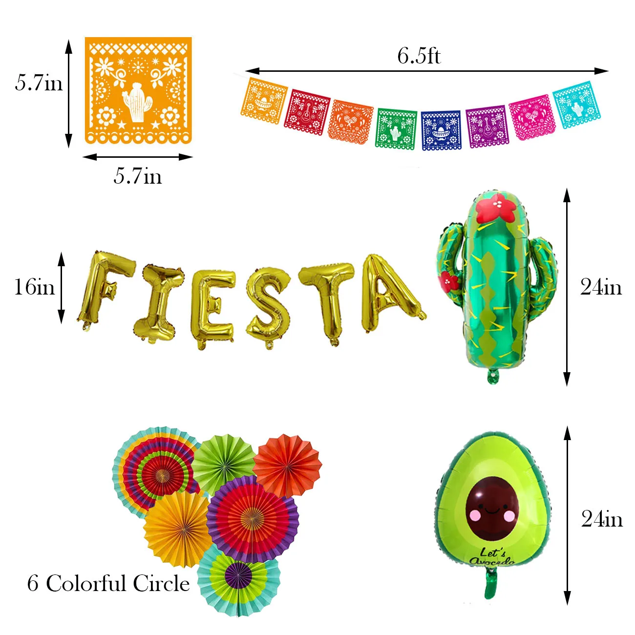 🌵MEXICAN PARTY DECORATIONS: 6 pcs paper fans in 3 size: 2 x 8”, 2 x 12”, 2 x 16”. 1 x FIESTA gold foil balloons. 1 x Cactus foil balloons. 1 x avocado foil balloons. 1 x PET material 8 colour 4 style papel picado banner. 🌵MEXICO FIESTA THEME: This decorative party bundle features handmade banners and fans made exclusively in vibrant colors and good quality crafted materials, that will bring out the festive spirit, rich culture and mexican traditions to your event 🌵EASY TO ASSEMBLE: Each fan with one yard thin white ribbon for hanging. Balloons matching straw with silk ribbon. 🌵PARTY GOOD IDEA: They are great to clustered together as a backdrop,hanging from wall, branches in trees, ceiling, curtain, above a table, under the veranda or door. Also can be used as photography background and props for you to take beautiful selfies with your family and friends. 🌵DIY: Craft art brings much fun, it will inspire your imagination and creativity to design or decorate your birthday party, wedding, carnival, Cinco De Mayo, Mexican, baby shower garland decoration, nursery christening, celebration decorations, dinosaur birthday parties, Arbor Day, home decorations, kids party or children games.