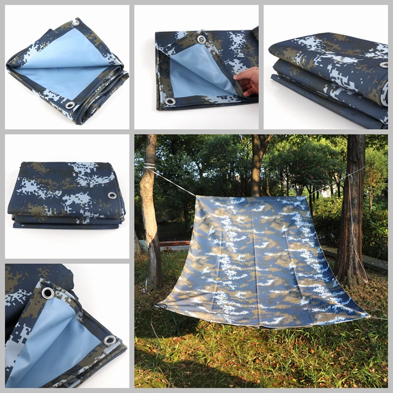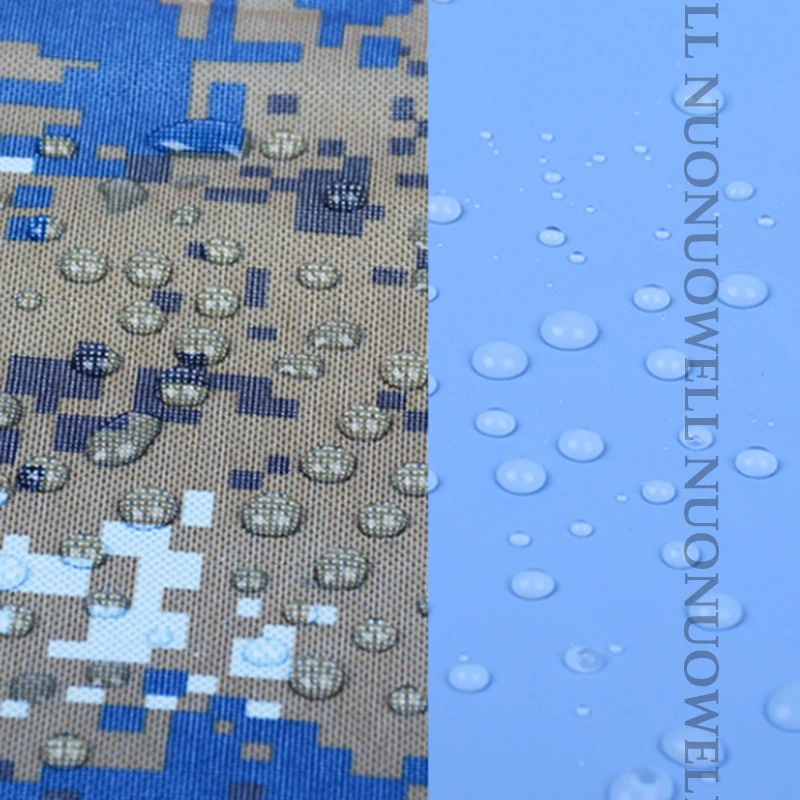Origin: China Product Name: PVC Rainproof cloth Color:Ocean camouflage Thickness: 0.45mm Weight:450gsm Features: Extra-thick soft PVC rainproof cloth, good waterproof effect, corrosion resistance, anti-aging, high strength, can be used repeatedly. Material: PVC coated Oxford fabric