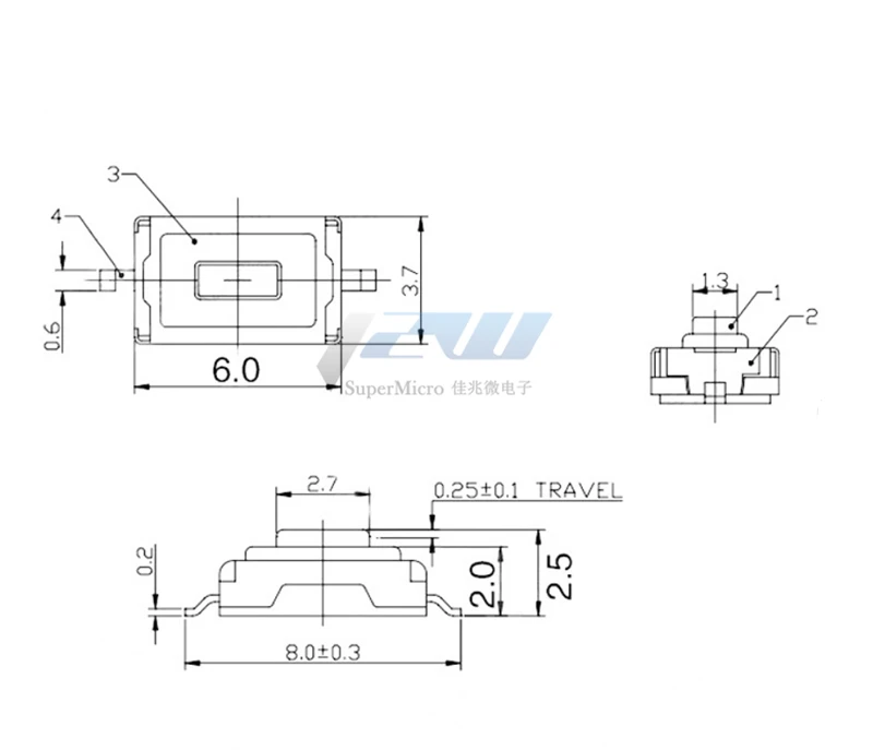 Лот из 100 шт SMT, 3x6x2,5 мм, 2pin, сенсорная кнопка, G73 микро переключатель, автоматический сброс