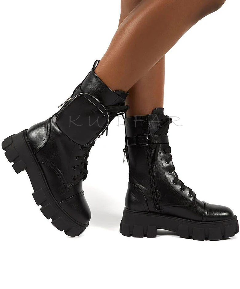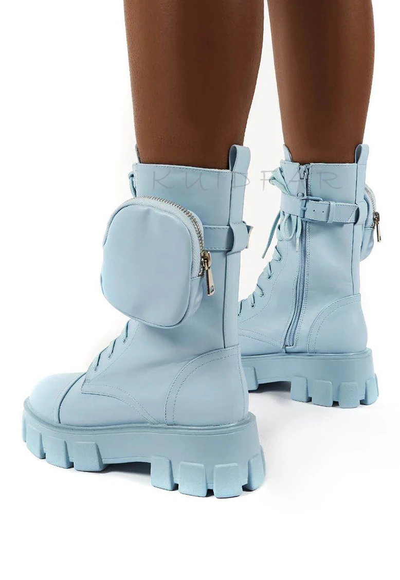 Женские ботинки; Модные не сужающиеся книзу массивные ботинки с карманами; Ботинки на платформе; Женские ботильоны на шнуровке; Женская обувь на каблуке с сумочкой в стиле панк; Botas Mujer