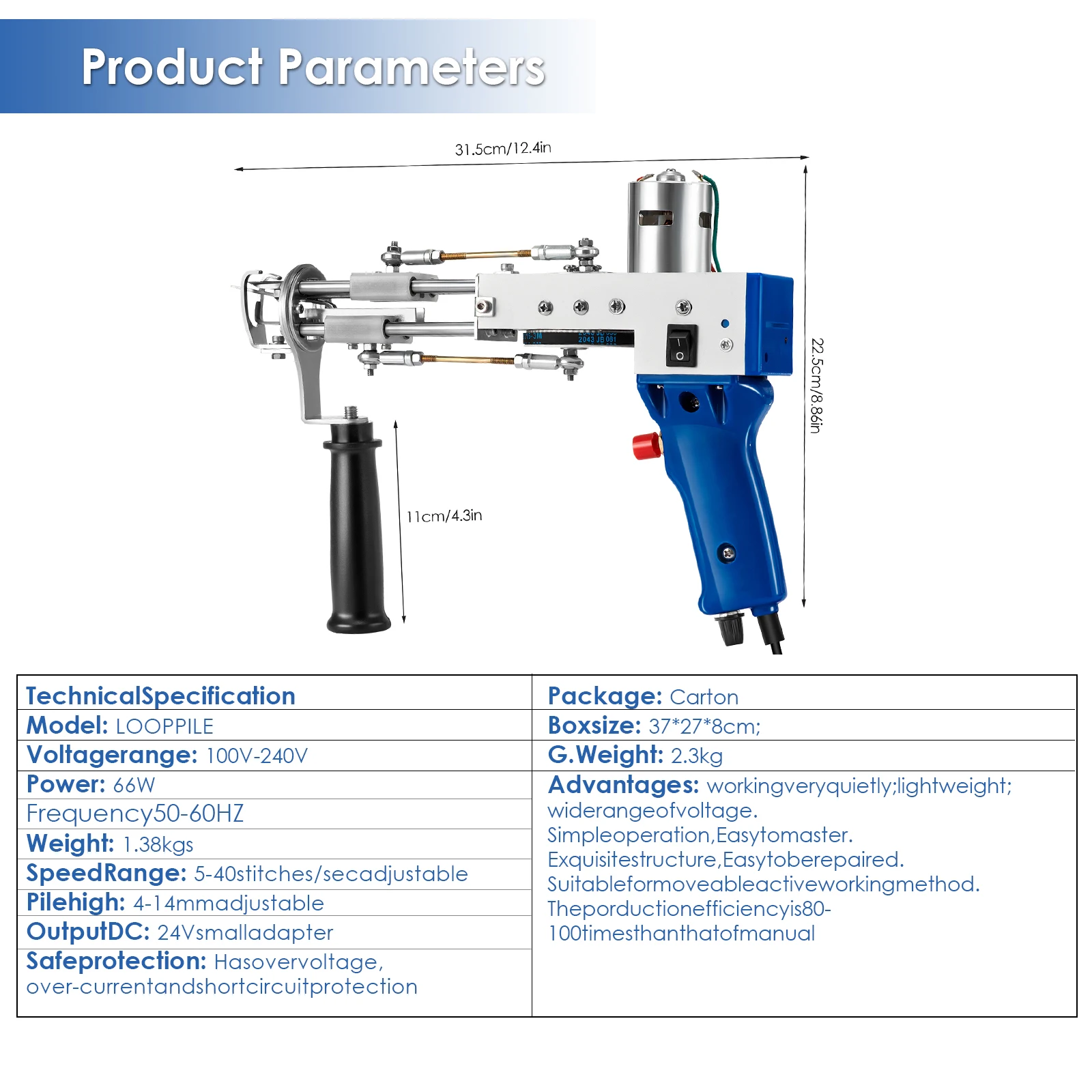 [Удовлетворить различные потребности] скорость этой tufting студии пистолет может достигать 5-40 стежков в секунду, и регулируемая высота ковра 4-14 мм, что повышает эффективность производства в 80-100 раз и экономит больше, чем ручное вязание рабочей силы и времени.
