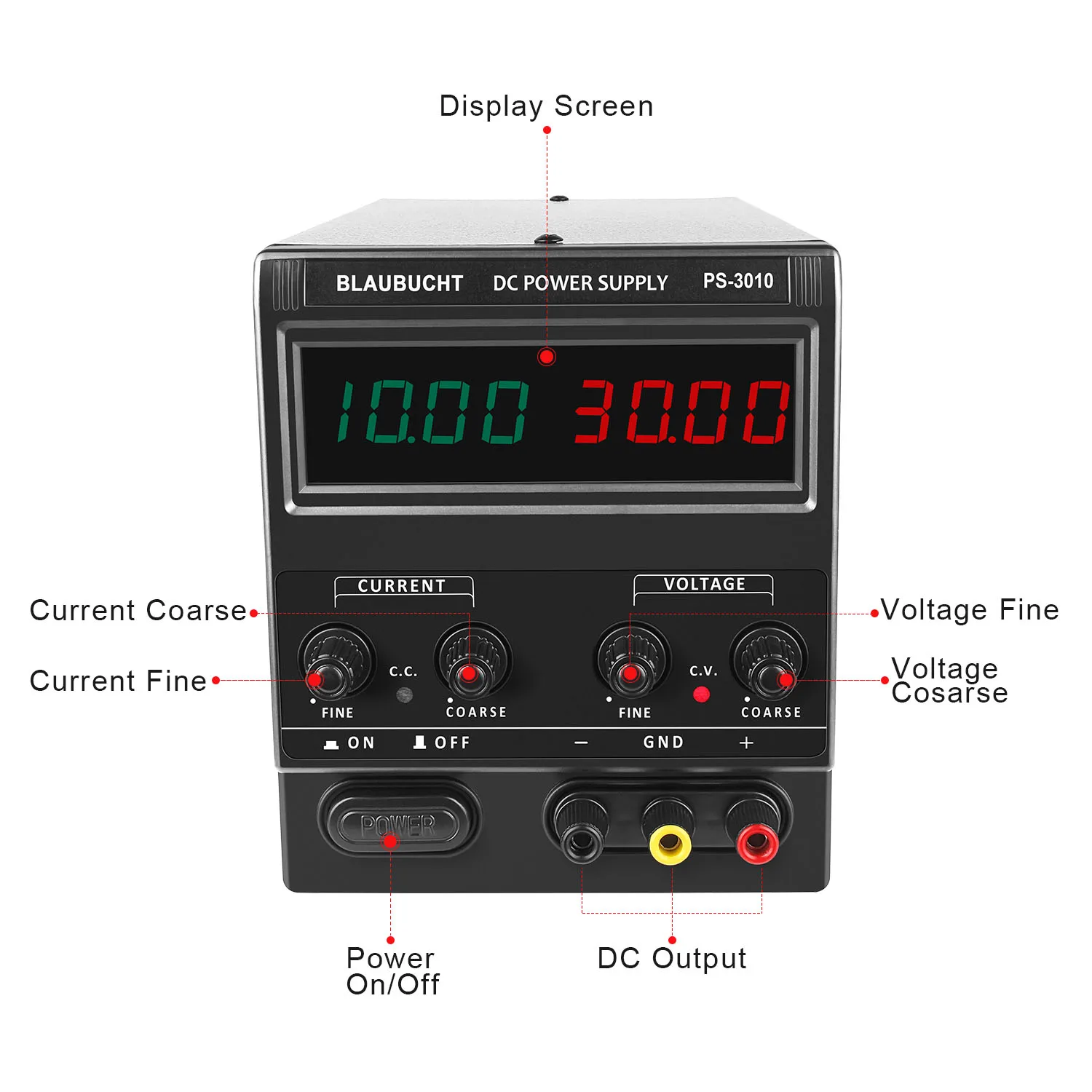 1 * Источник питания постоянного тока 1 * кабель питания 1 * Линия вывода (подарок) 1 * Инструкция 10 * цветная Выходная линия (опционально) 1*28 клеммных головок (опционально) 1 * 10A мультиметр ручка (опционально) 1 * зажим типа «крокодил» (опционально)