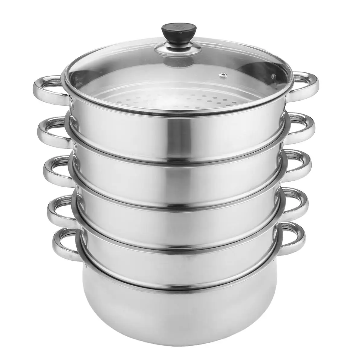 5 ярусов Нержавеющая сталь паровой котел, металлическая Пароварка Корзина для Краб морские Еда овощей из бамбука