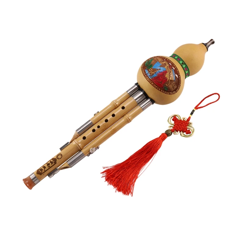 Элегантный внешний вид, ручная резная натуральная тыква, Бамбуковая тоновая труба, с двумя суб трубами и одним плунжером.