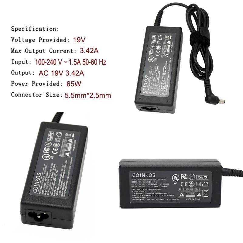 Товар:65 Вт 19 в 3.42A ноутбук адаптер питания для Acer/Toshiba/Asus/Lenovo ПК