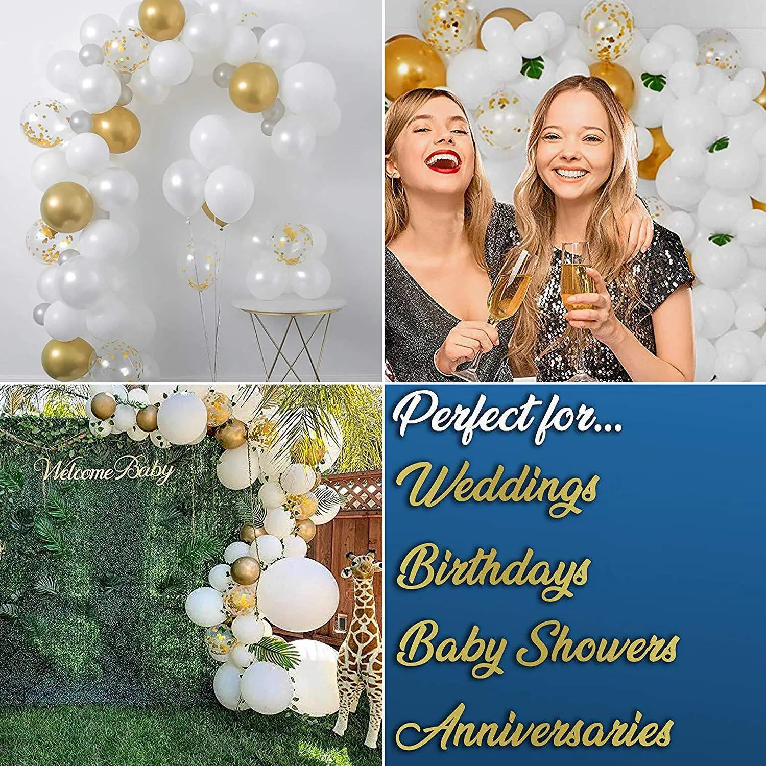 12 дюймов металлический золотой 10 шт 6 дюймов черепаховый задний лист 6 шт. 12-дюймовый блестками Золотой 10 шт. Узловязатель 1 шт. 12 дюймов матовый белый 60 шт воздушный шар дозирования 1 шт. 5 дюймов матовый белый 10 шт. 10 м лента 1 шт. 5 м цепочка для воздушных шаров 1 шт. Вес: 320 г
