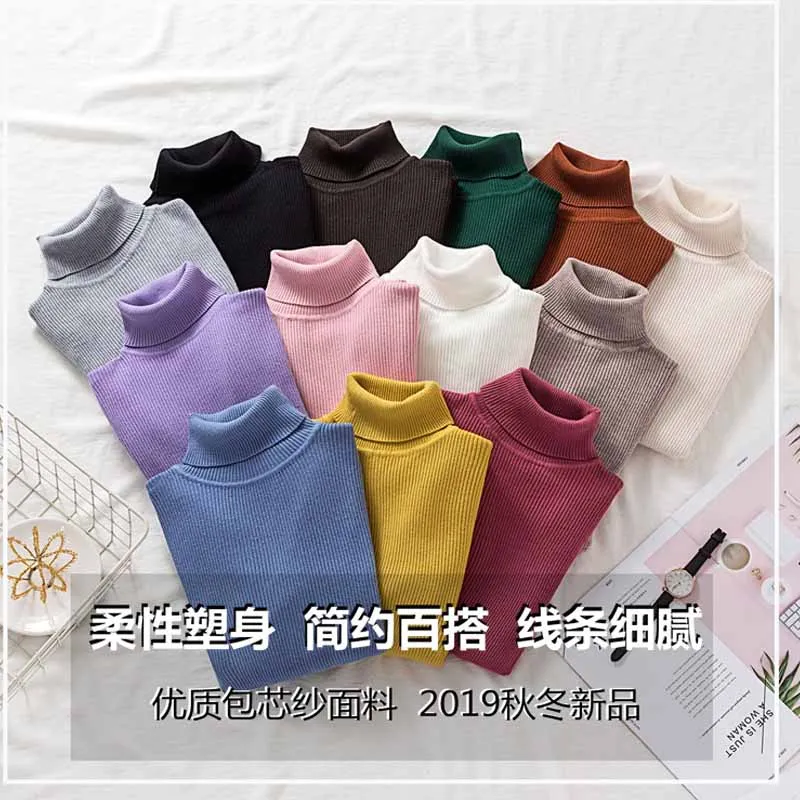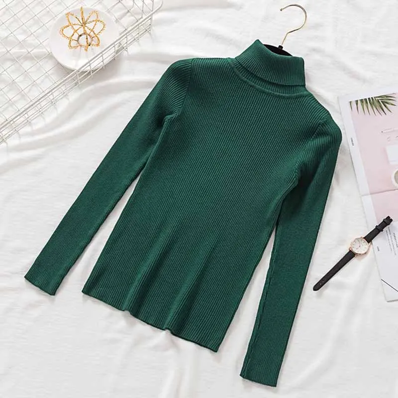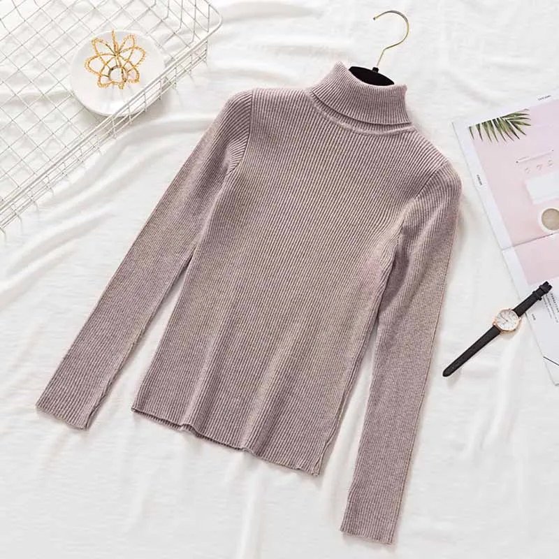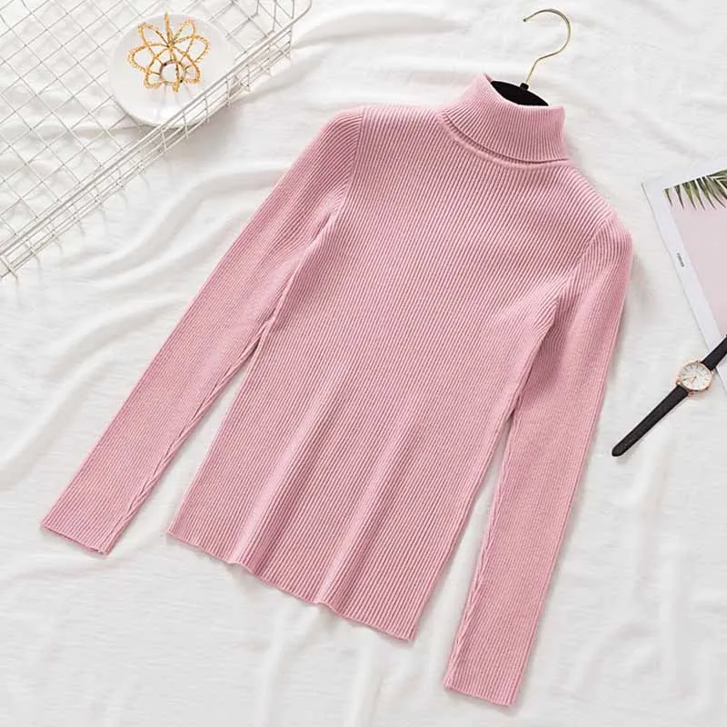 Turtleneck Women Pullover Sweater Spring Autumn Jumper Knitted Basic Top Fashion Autumn Long Sleeve Korean Ladies Clothes 2020