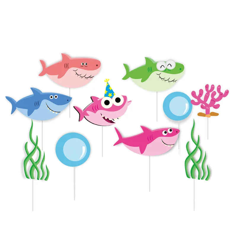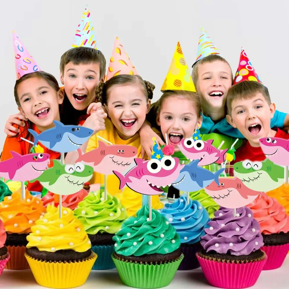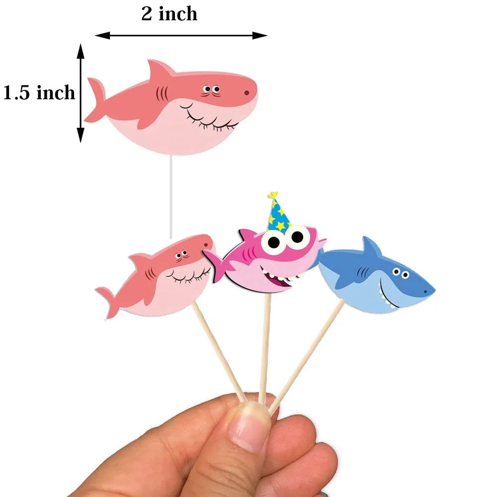 Акула кекс топперы-40 шт мультфильм Акула кекс Топпер комплект День рождения украшения милый мультфильм Акула торт украшения