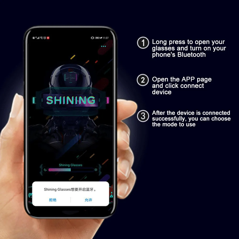 2. Включите приложение "Shining Glasses", Включите Bluetooth