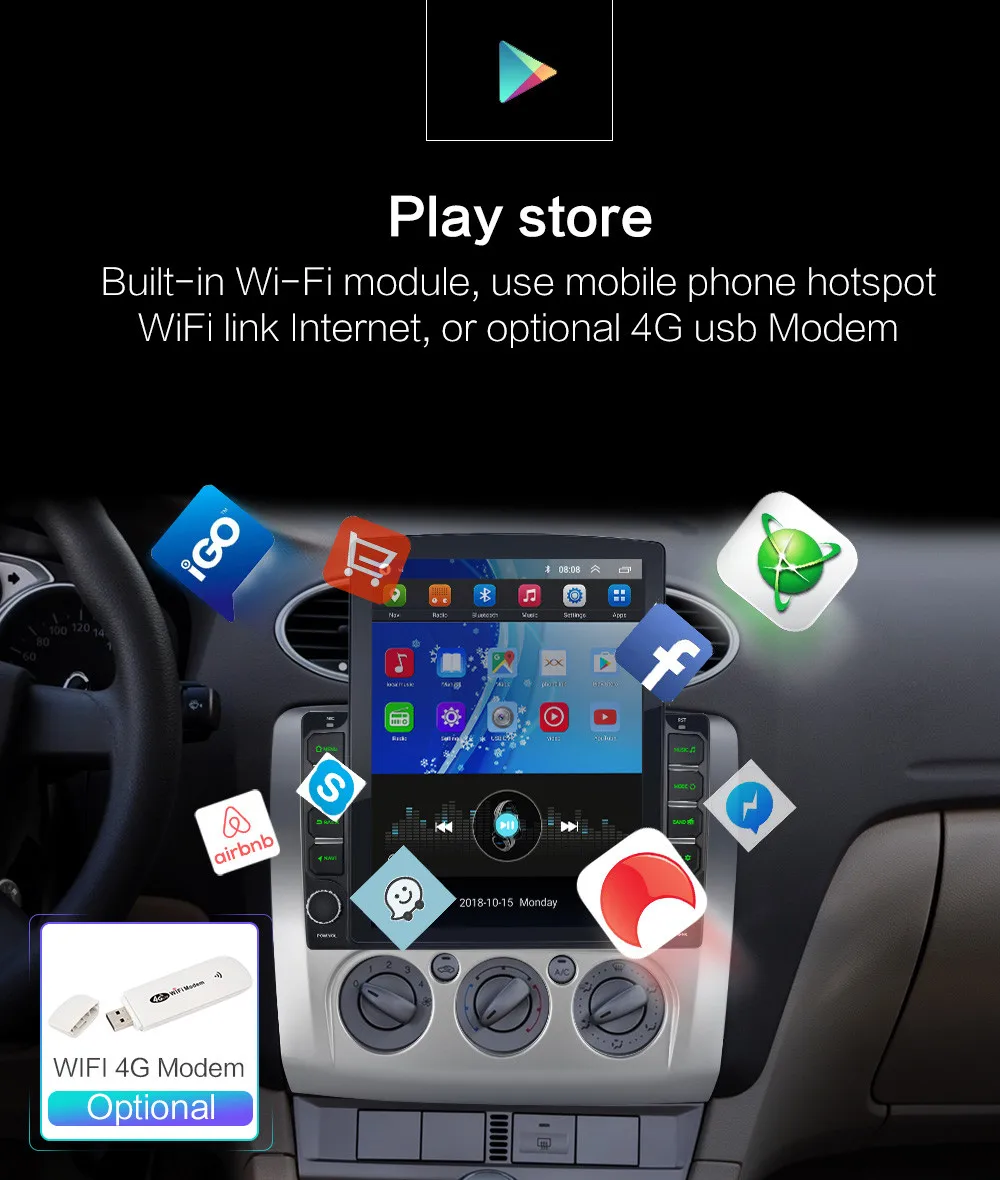 For Manual, automatic Ford Focus 2004 2005 2006 2007 2008 2009 2010 2011 1, Android operating system can install the application application Google Play store Skype Facebook youTube Twitter, etc 2, 4-Core configuration includes (RAM + ROM): 2G + 16G / 2G+32G [ Optional ] 3. Support :radio station, Bluetooth call, Bluetooth music, steering wheel control, built-in WiFi, MP3, video music (MPG, AVI), navigation, video output, mirror link, USB 4G LTE WIFI Dongle and other functions 4, 4-Core contain:Version: Android 8.1 Support car logo5;Sfactory password: 8888 Resolution:HD 2.5D,1024*600; Does not support AM function, RDS function; Ordinary WiFi version package supports video output function 5, there are various menu languages on the screen: Chinese (Simplified), Chinese Traditional,English,Russian, Spanish, Turkish, Hebrew, Arabic, French, German, Portuguese, Korean,Thai,Poland 48, etc. 6, Support :radio station, Bluetooth call, Bluetooth music, steering wheel control, built-in WiFi, MP3, video music (MPG, AVI), navigation, video output, mirror link, USB 4G LTE WIFI Dongle and other functions ; Support OBD (optional) Support DAB + (optional)