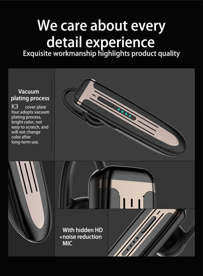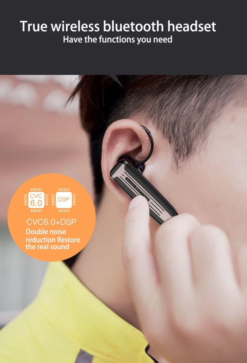 [Двойное шумоподавление микрофона] ---- bluetooth-гарнитура оснащена 2 микрофонами и новейшая технология CVC может блокировать помехи фона, такие как трафик, толпы или ветер, обеспечивая четкое аудио и естественный звук, таким образом, вы можете наслаждаться высококачественной музыкой и четкими звонками в любое время и в любом месте. [Удобный и удобный] ---- чрезвычайно удобный гель для ушей, удобный, плотно прилегающий, безопасный, специально для вас, вы можете носить его в течение нескольких часов одновременно. [Супер мощность] --- до 40 часов непрерывного разговора и 40 часов непрерывного прослушивания музыки. 720 часов в режиме ожидания. Зарядка занимает около 1-2 часов. При достижении уровня полной зарядки станет гореть, bluetooth-гарнитура 5,0 аккумулятор большой емкости является лучшим спутником для посадки, экспресс-доставка, rider доставки, путешествий, а также для выхода в свет, вождения и т. д. Лучшие продажи Bluetooth наушники Протокол Bluetooth: V5.0 Время зарядки: 2 часа Аккумуляторная батарея: 800 мАч Аккумулятор ne: 300 мАч Высшее качество Обновленная версия Bluetooth 5,0, Более быстрый и стабильный 300 мА-ч Полимерная литиевая батарея