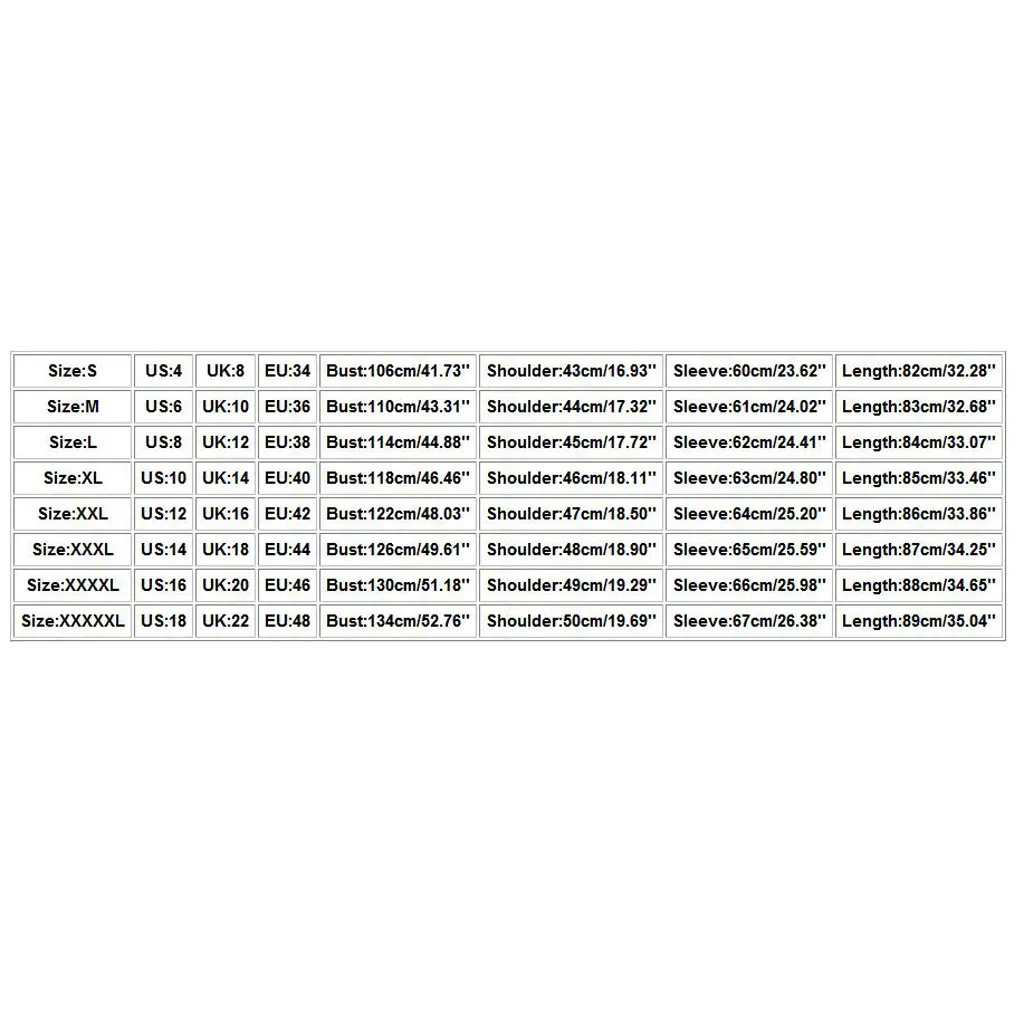 Размер США Великобритания ЕС Бюст Плечо Рукав Длина S 4 8 34 106 см/41,73'' 43 см/16,93'' 60 см/23,62'' 82 см/32,28'' М 6 10 36 110 см/43,31'' 44 см/17,32'' 61 см/24,02'' 83 см/32,68'' L 8 12 38 114 см/44,88'' 45 см/17,72'' 62 см/24,41'' 84 см/33,07'' XL 10 14 40 118 см/46,46'' 46 см/18,11'' 63 см/24,80'' 85 см/33,46'' XXL 12 16 42 122 см/48,03'' 47 см/18,50'' 64 см/25,20'' 86 см/33,86'' XХХL 14 18 44 126 см/49,61'' 48 см/18,90'' 65 см/25,59'' 87 см/34,25'' XXXXL 16 20 46 130 см/51,18'' 49 см/19,29'' 66 см/25,98'' 88 см/34,65'' XXXXXL 18 22 48 134 см/52,76'' 50 см/19,69'' 67 см/26,38'' 89 см/35,04''