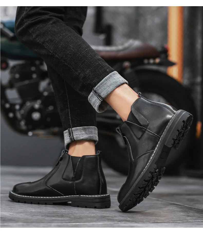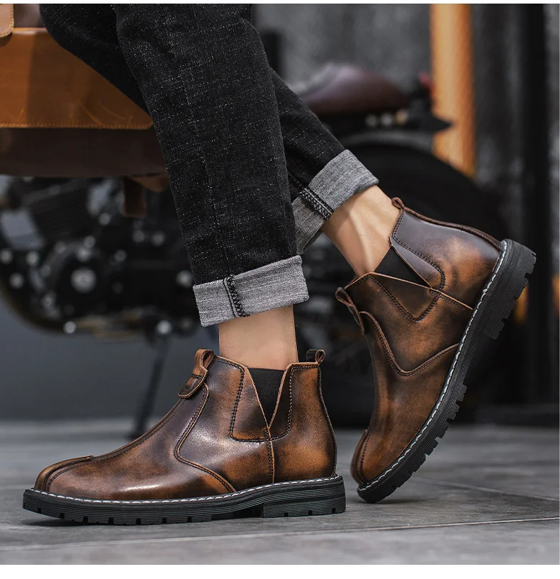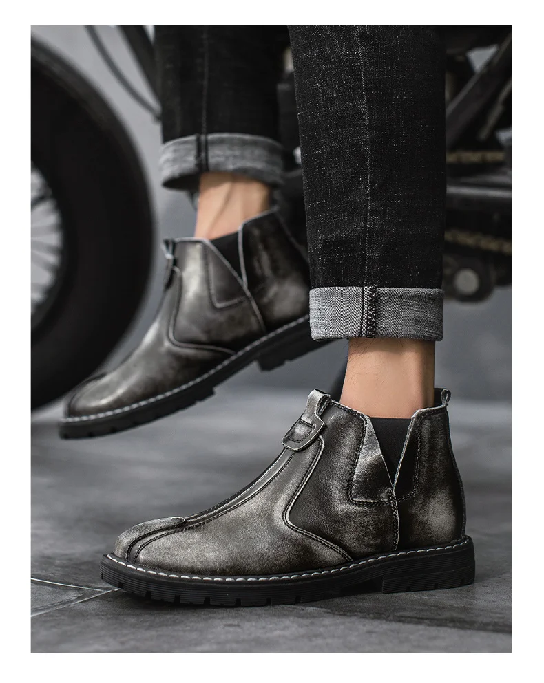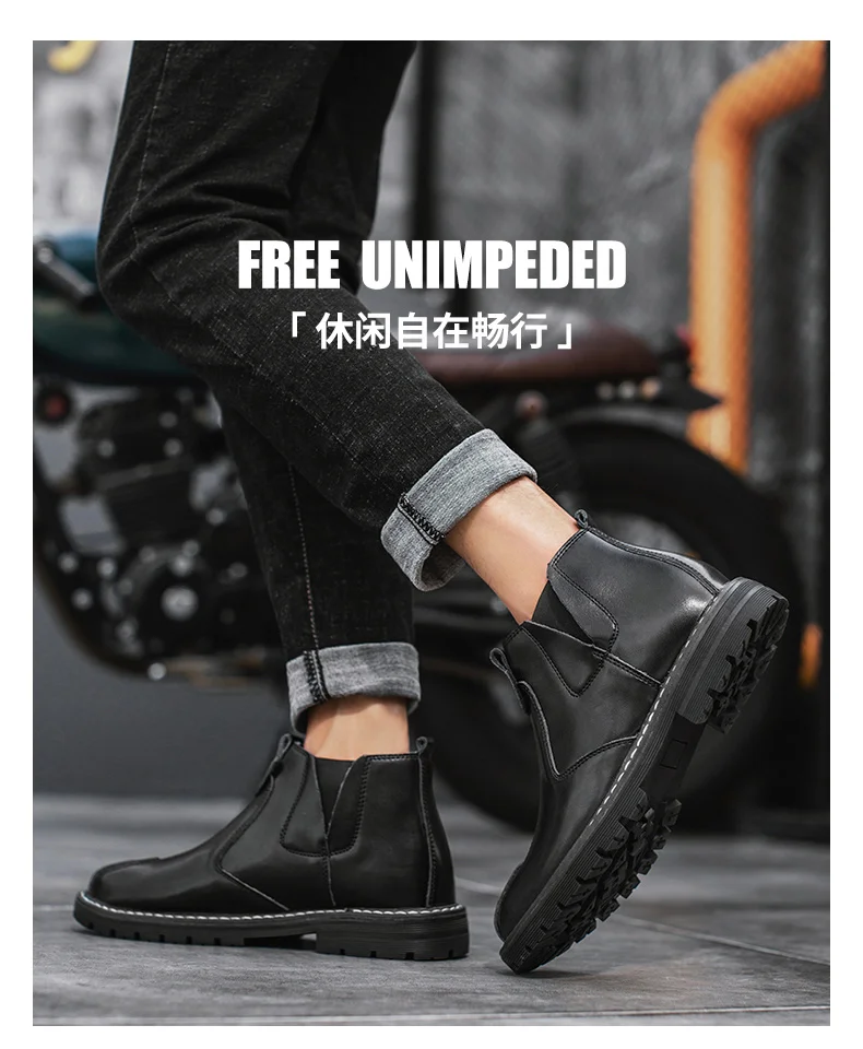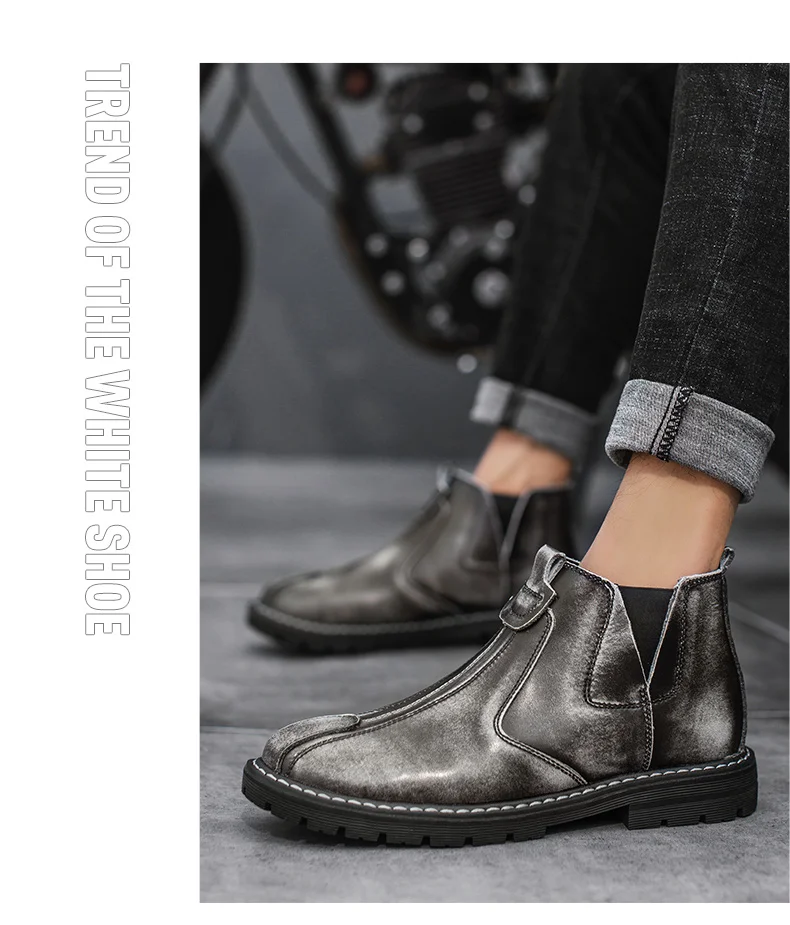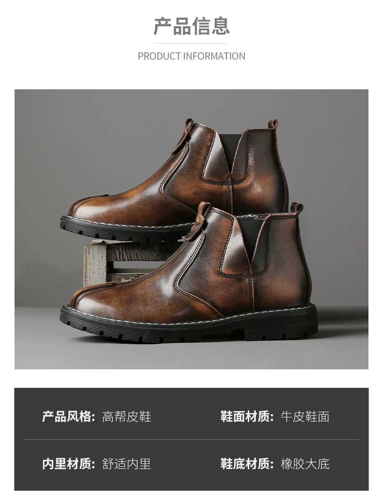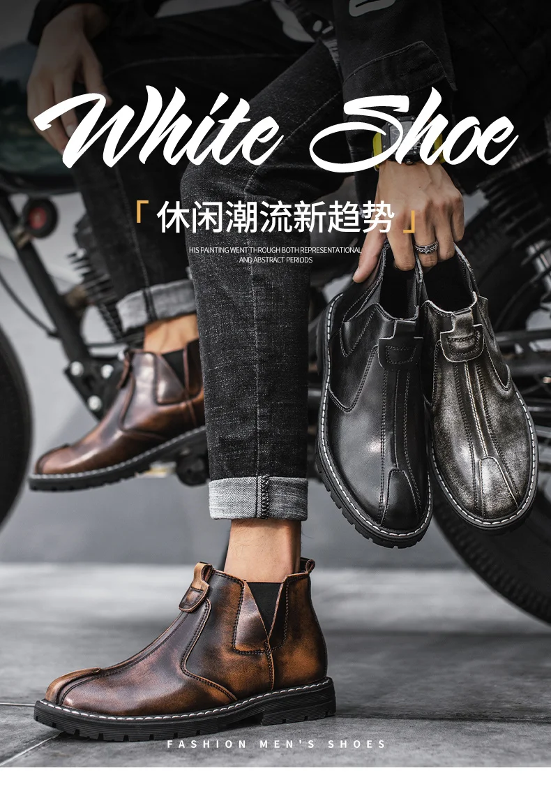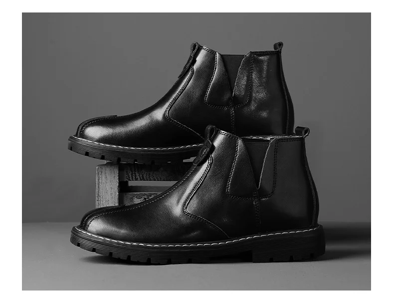 Мужские ботинки «Челси» на меху; Сезон весна-зима; Модные ботильоны в британском стиле; Цвет черный, коричневый, серый; Повседневная обувь из мягкой кожи; 2020