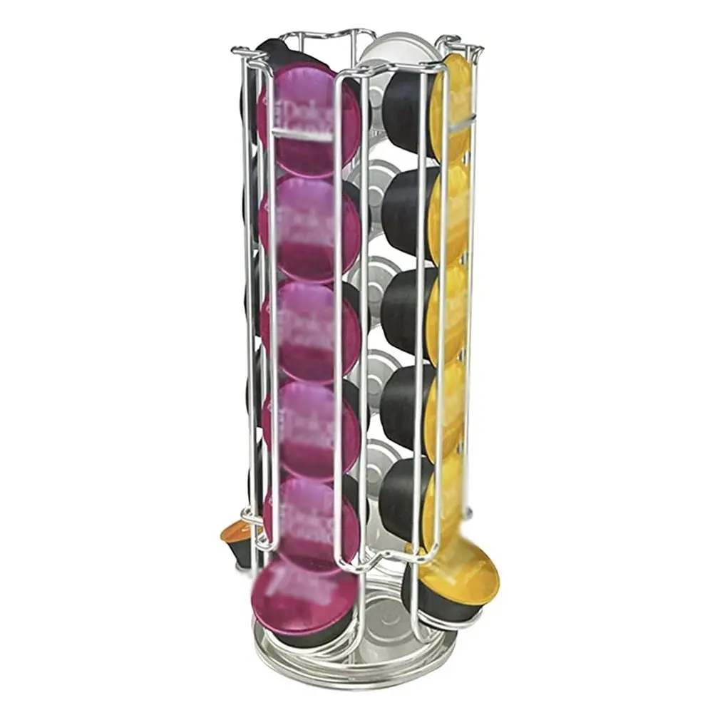Особенности: 1. Прочный материал: изделие имеет прочную металлическую структуру с металлическим блеском и гладкой хромированной поверхностью, которая надежна по качеству и долговечна. 2. Вращающаяся конструкция: нижняя часть изделия включает вращающийся на 360 градусов круглый поворотный стол, который может вынуть капсулу сверху и снизу, с нескользящей войлочной основой, который является стабильным и не будет легко скользить. 3. Хранение и отображение: продукт очень подходит для хранения кофейных капсул. Он имеет отличную функцию экономии пространства на кухне и может легко отображать все кофейные капсулы. Описание: Этот продукт является держателем для кофейных капсул, который может поворачиваться на 360 градусов и изготовлен из прочного и прочного материала, который удобен для хранения и отображения. Характеристики: Материал: железо Вес: 560 г Размер: 13*13*33 см Посылка включает в себя: 1 * держатель для кофейных капсул