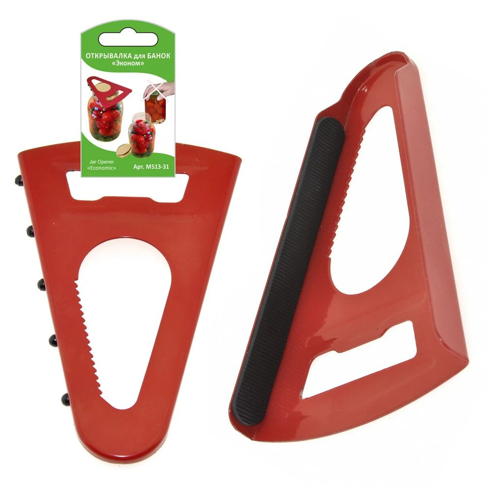 Открывалка для банок Home Novelties Limited Эконом С открывалкой для банок «Эконом» вы легко откроете закручивающиеся крышки с любых стеклянных банок. Чтобы крышка не прокручивалась, на ней предусмотрена резиновая прокладка. Плотно прижмите открывалку к крышке, уперев к узкой части. Удерживайте банку одной рукой, а другой отворачивайте против часовой стрелки. Изготовлена из металла с эмалевым покрытием, прокладка из резины.