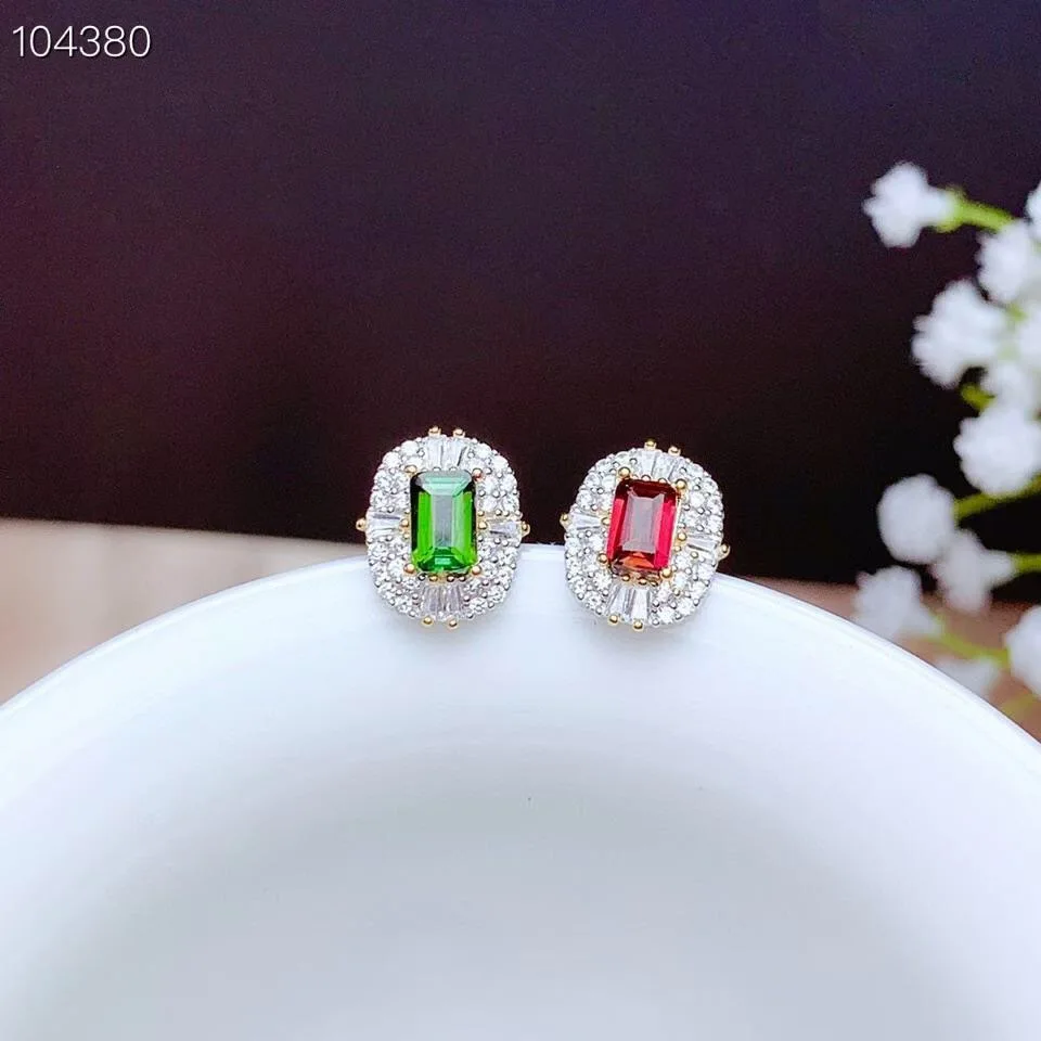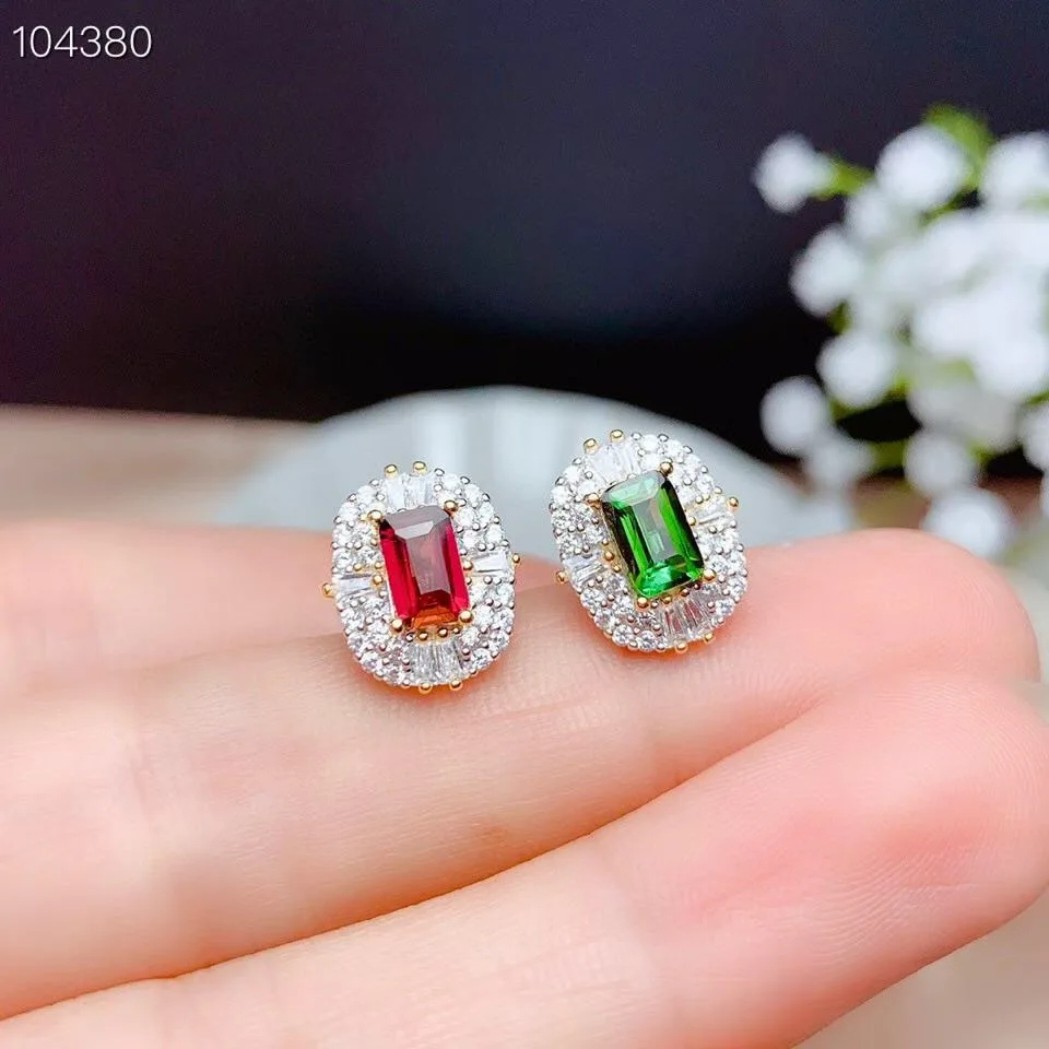 Драгоценный камень Тип: турмалин Размер основного камня: приблизительно (4x6 мм) x2 Цвет камня: зеленый, красный Камень Форма: прямоугольник Тип металла: серебро 925 пробы Обработка поверхности металла: двухцветное гальваническое покрытие Боковой камень: кубический циркон