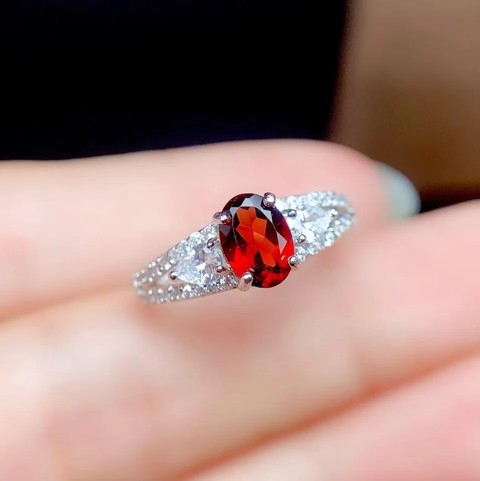 New Natural Mozambique Pigeon Blood Garnet Ring 925 Silver Women's Wedding Essential Jewelry