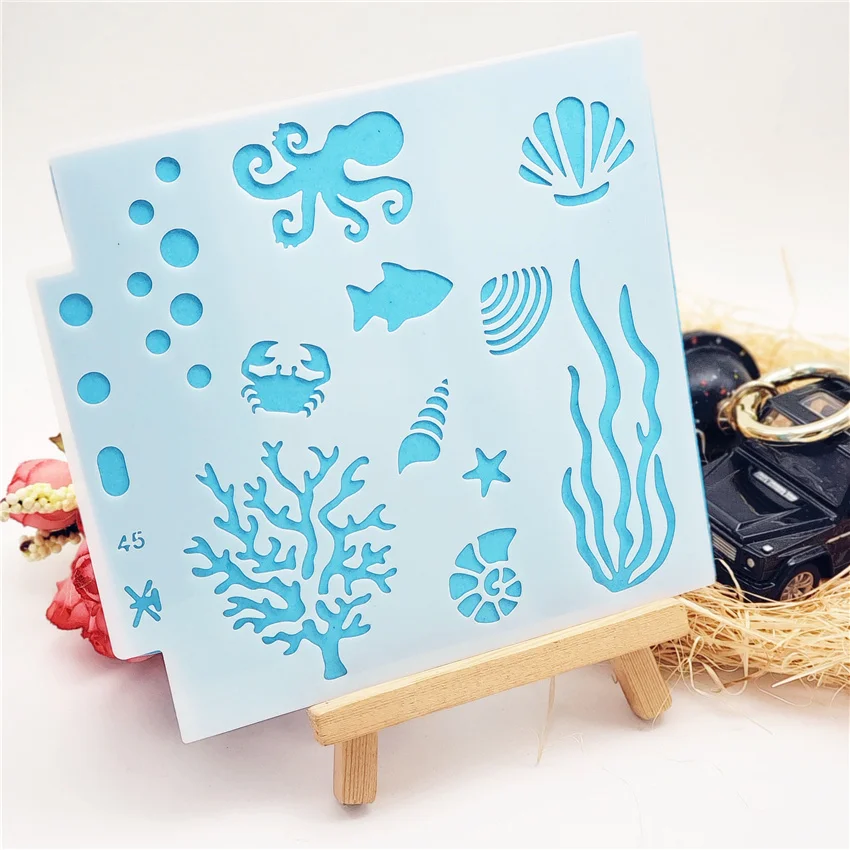 13*14 см морской мир Обложка templat трафареты для скрапбукинга спрей Пластиковая форма Щит DIY торт полые украшения Печать Кружева линейка