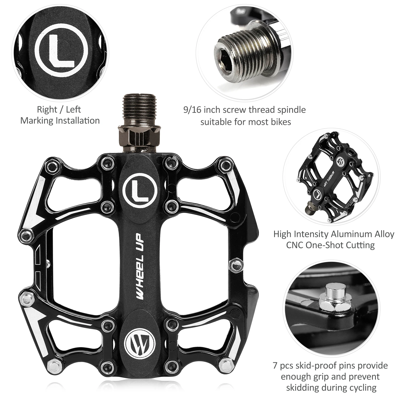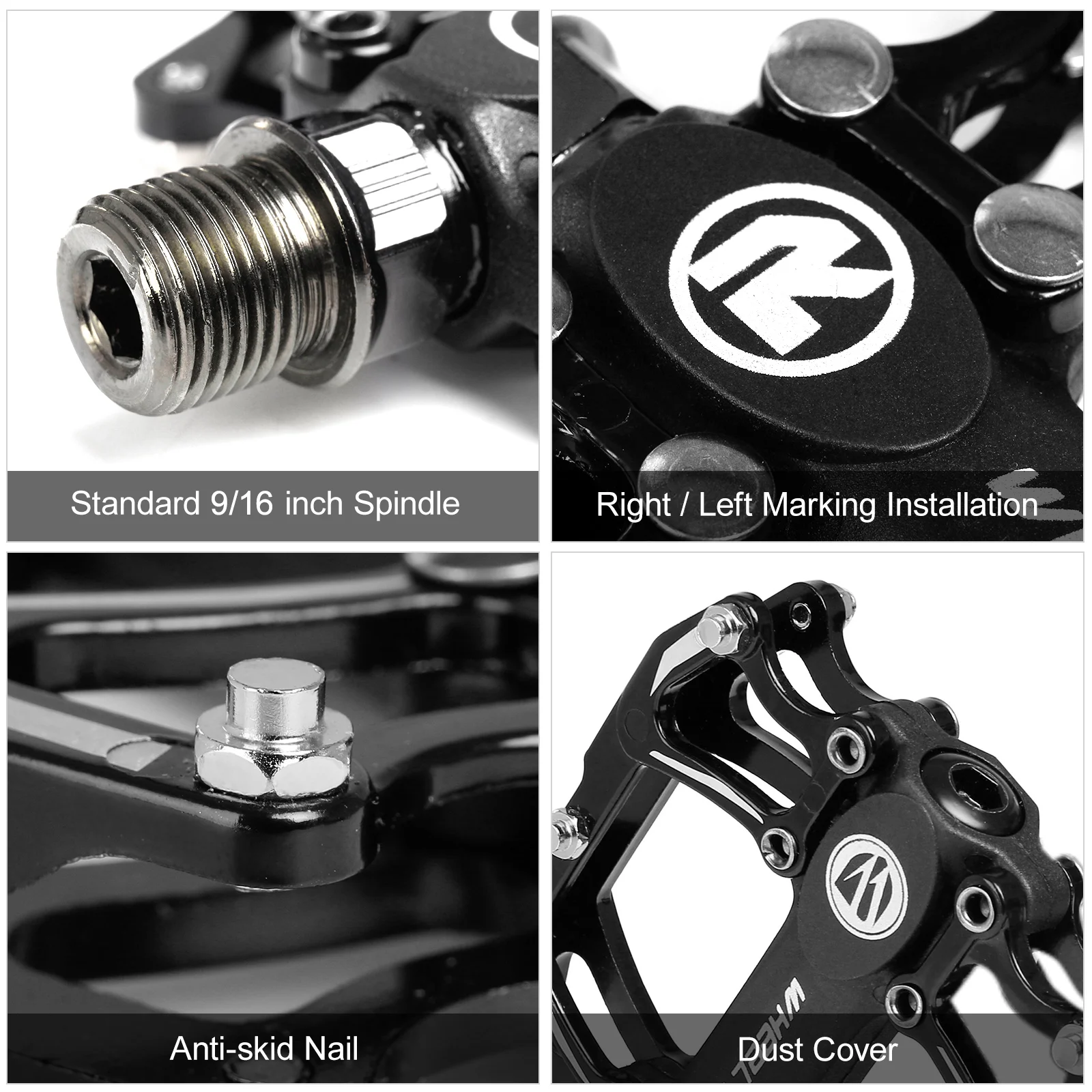 L для левой педали, R для правой педали, ударопрочность, стойкость к истиранию и коррозии.
