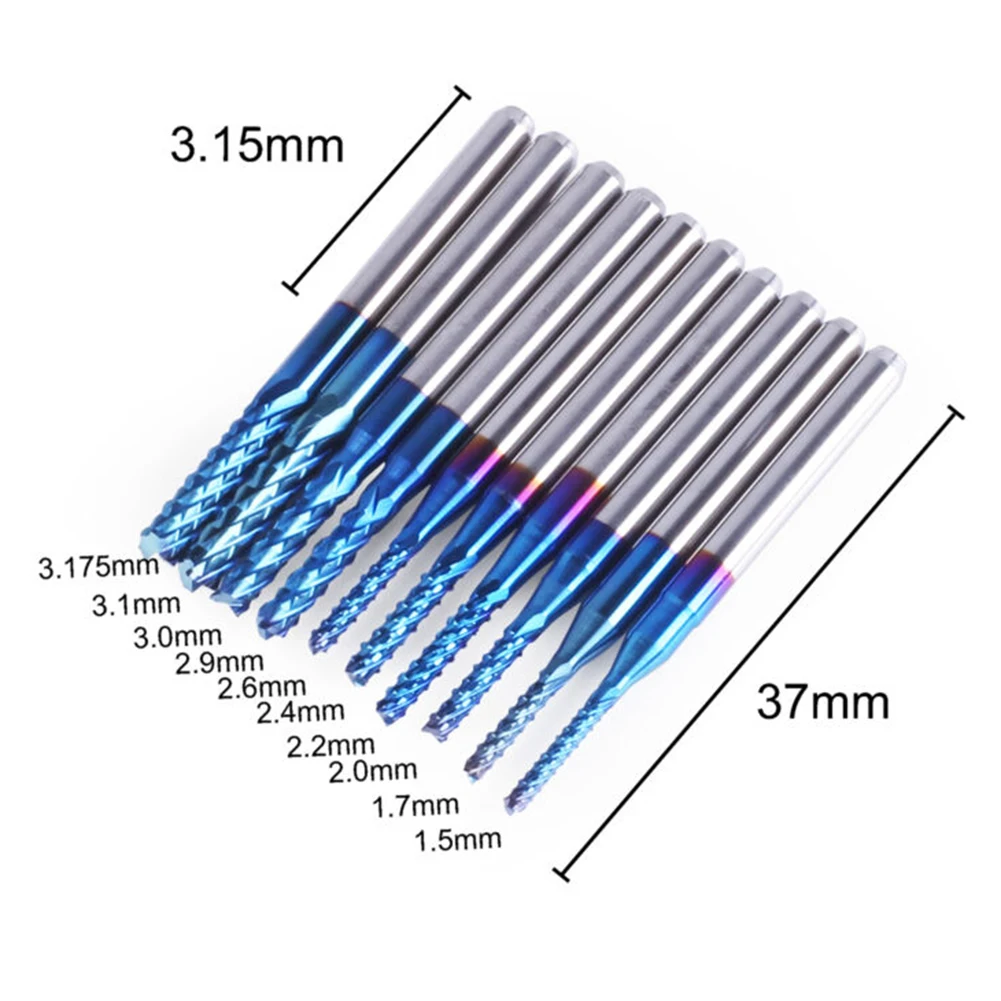 Диаметр режущей кромки: 1,5-3,175 мм (1,5/1,6/1,7/1,8/2,0/2,2/2,4/2,5/3,0/3,175 мм), 10 шт.