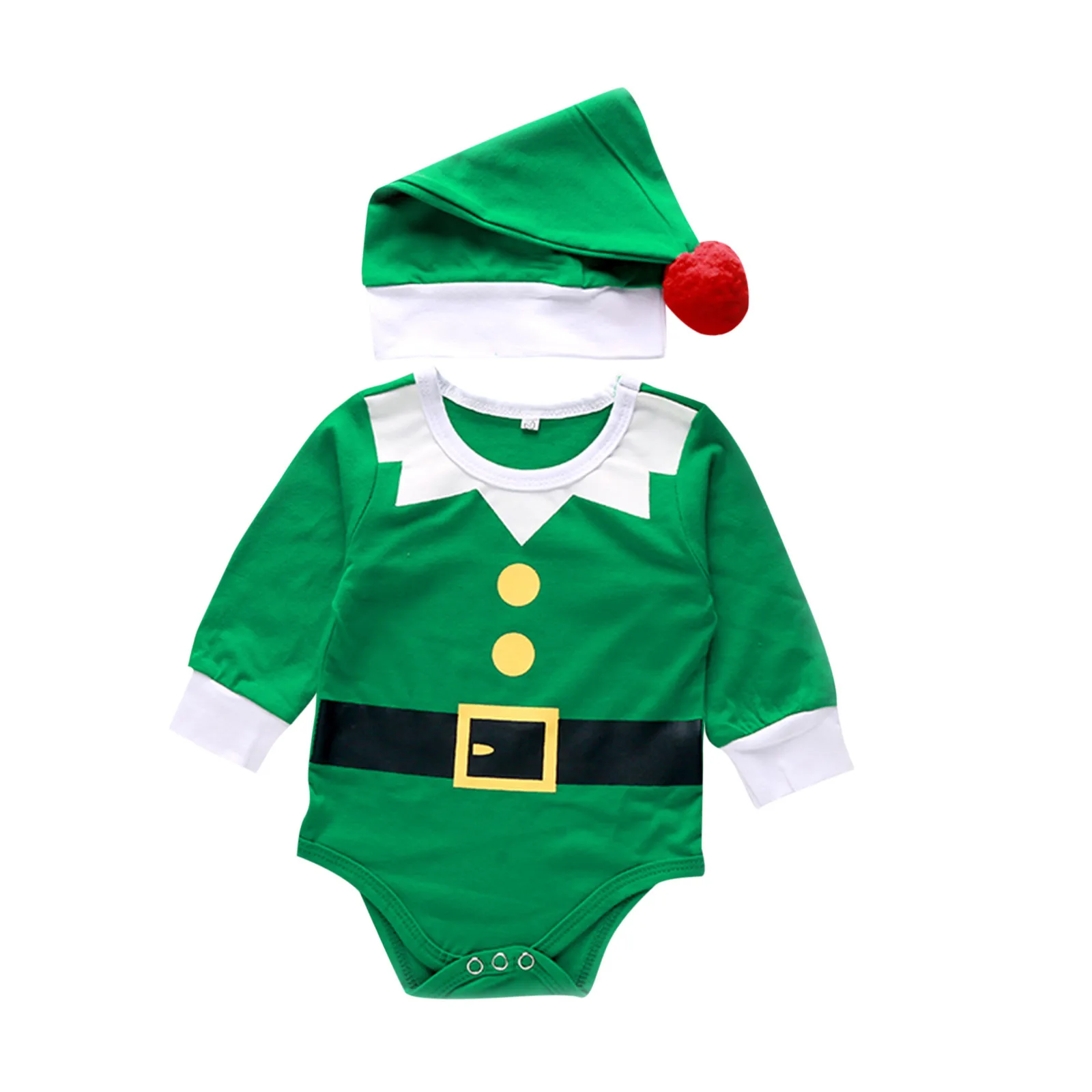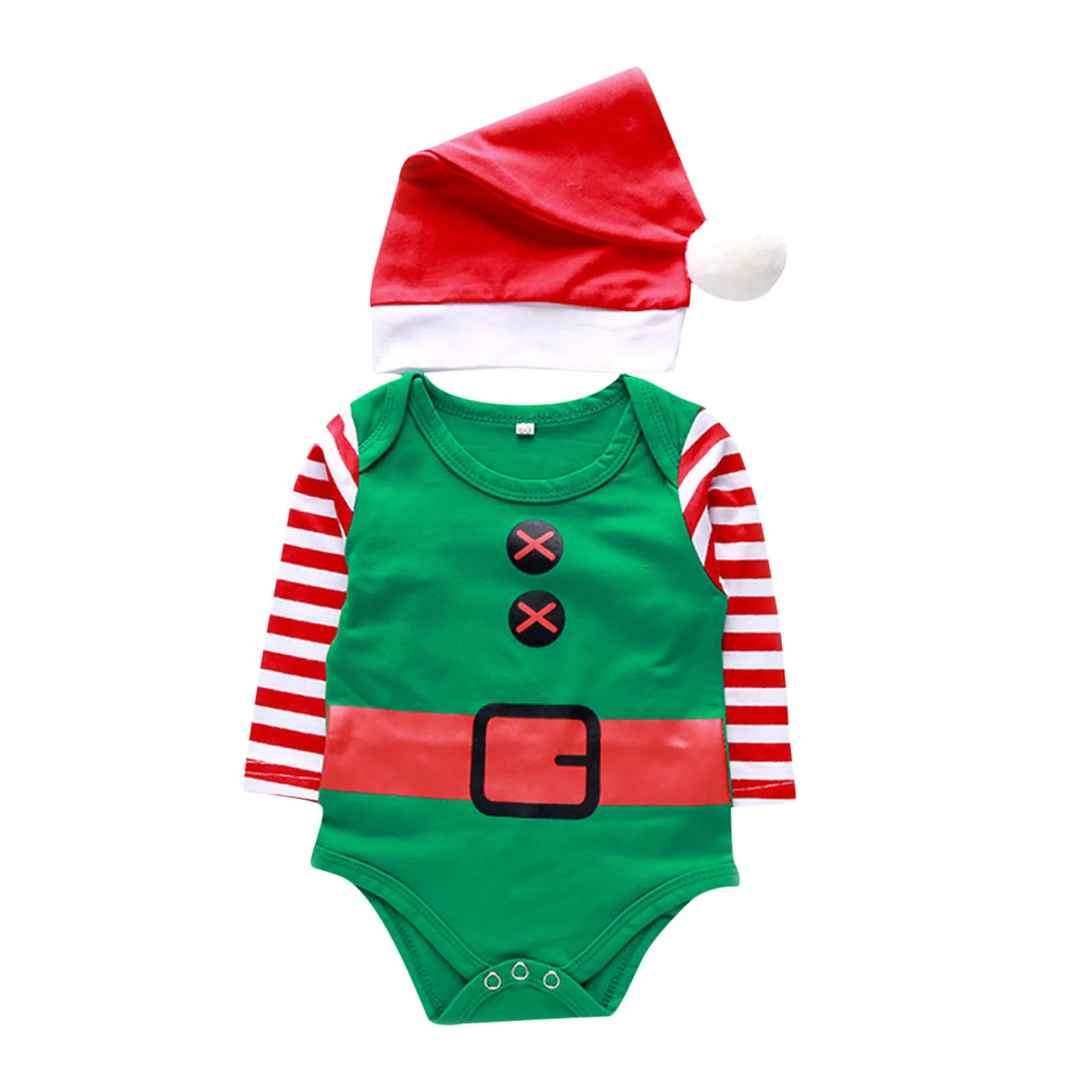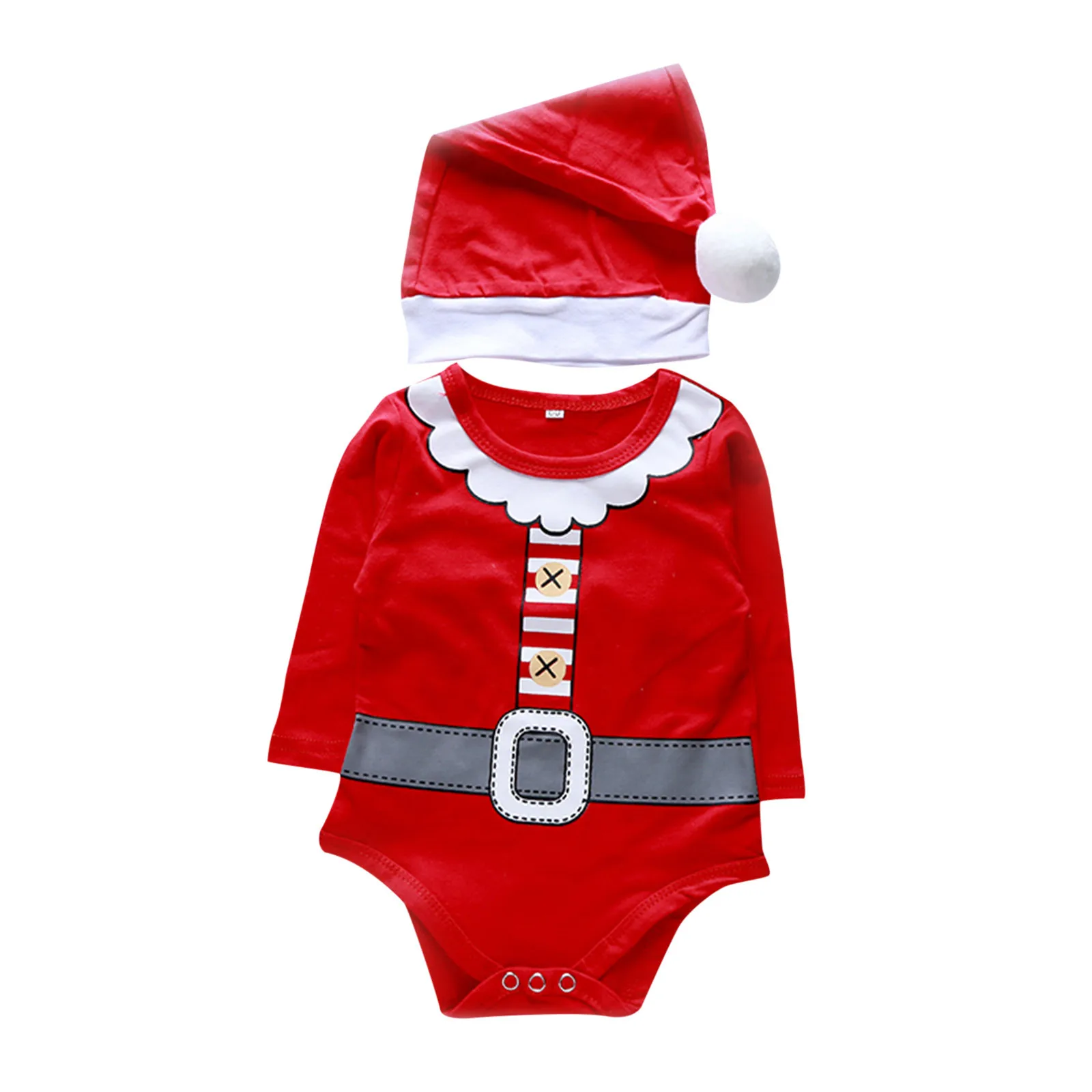 Одежда для новорожденных мальчиков и девочек Рождественская шапка с длинными рукавами и рисунком комбинезон игровой костюм одежда 3 6 12 18 месяцев