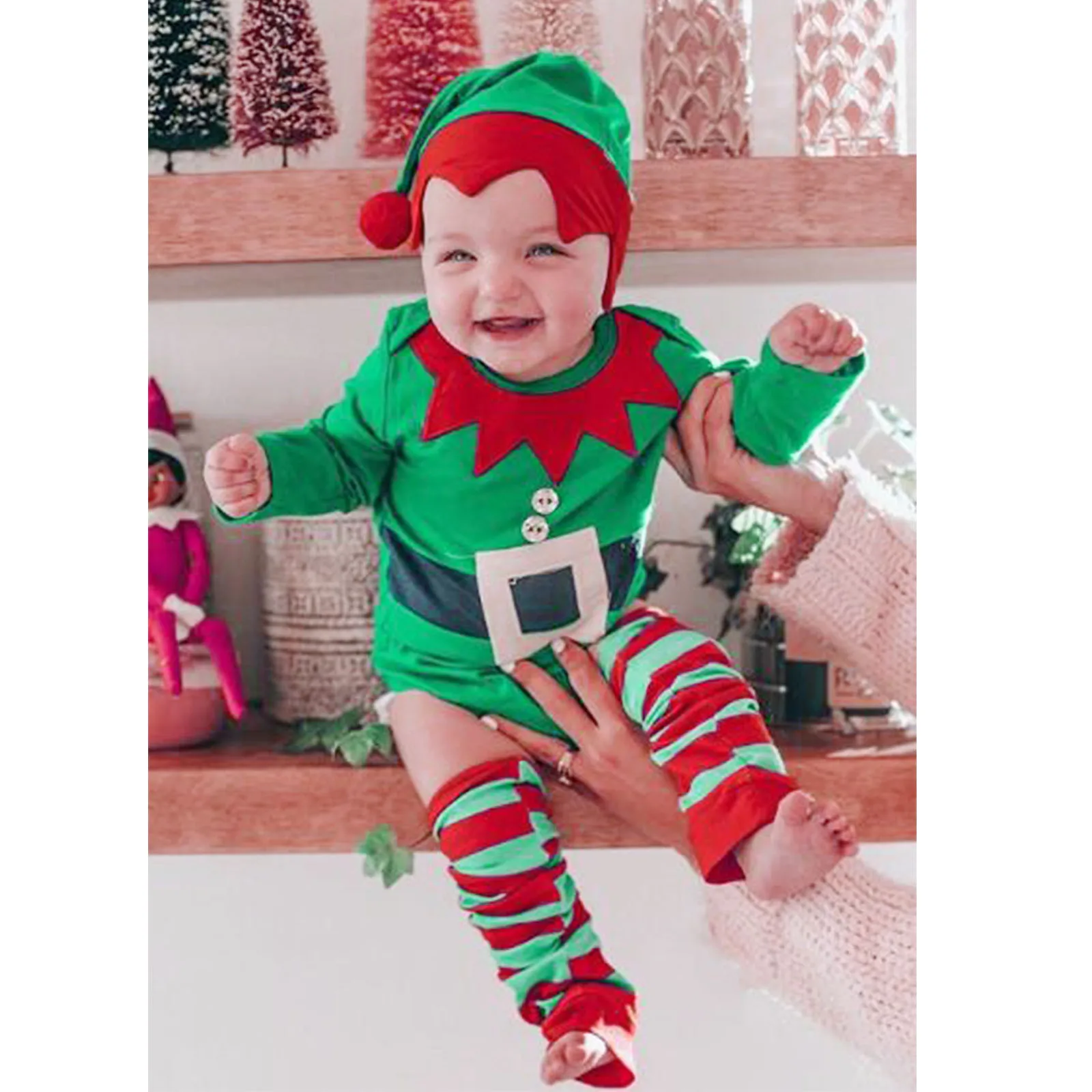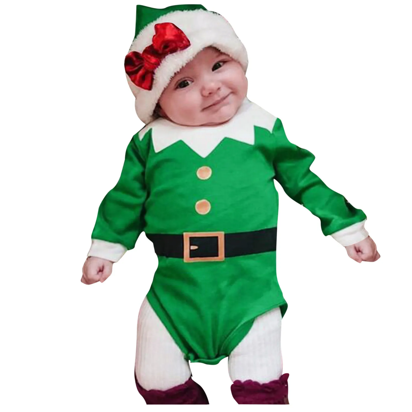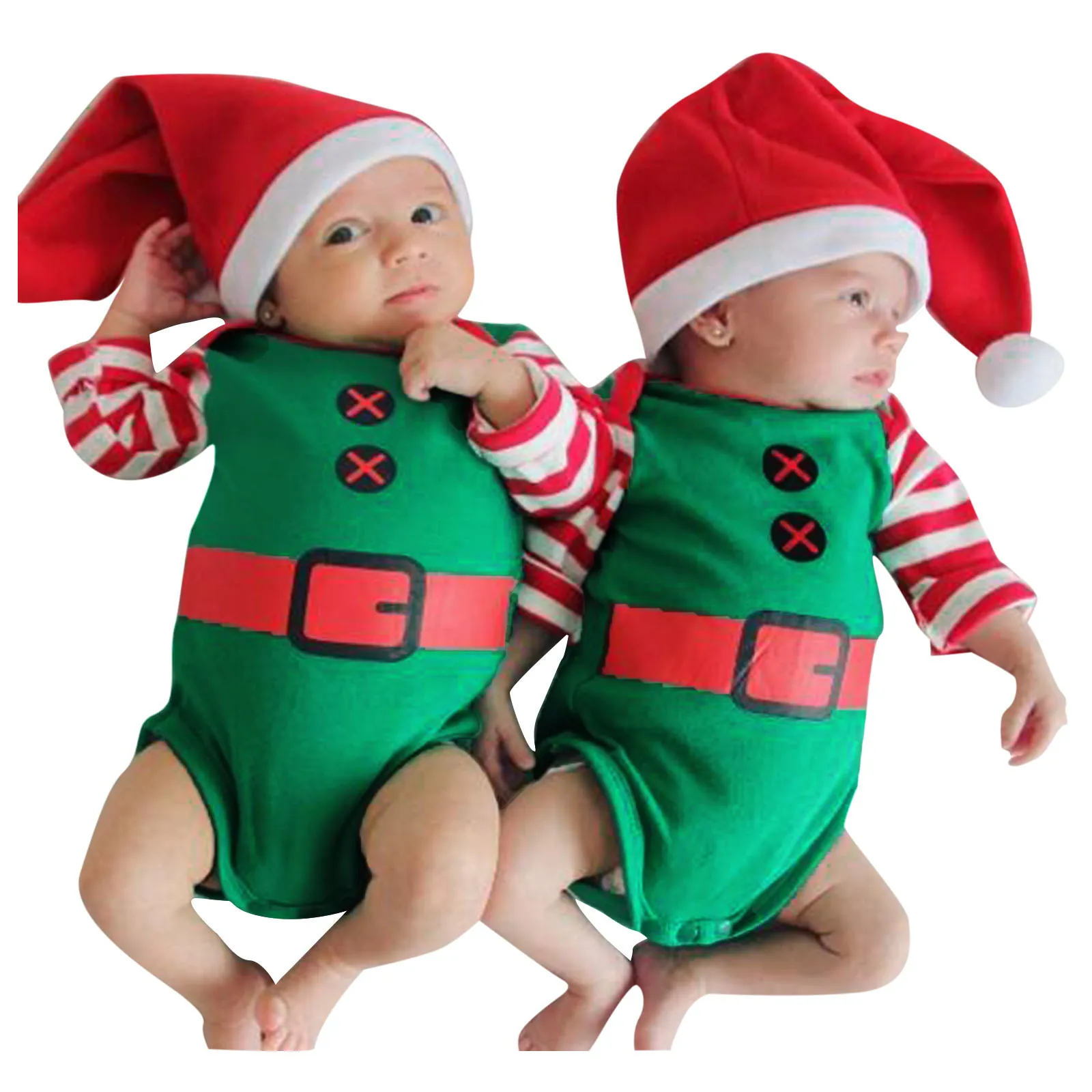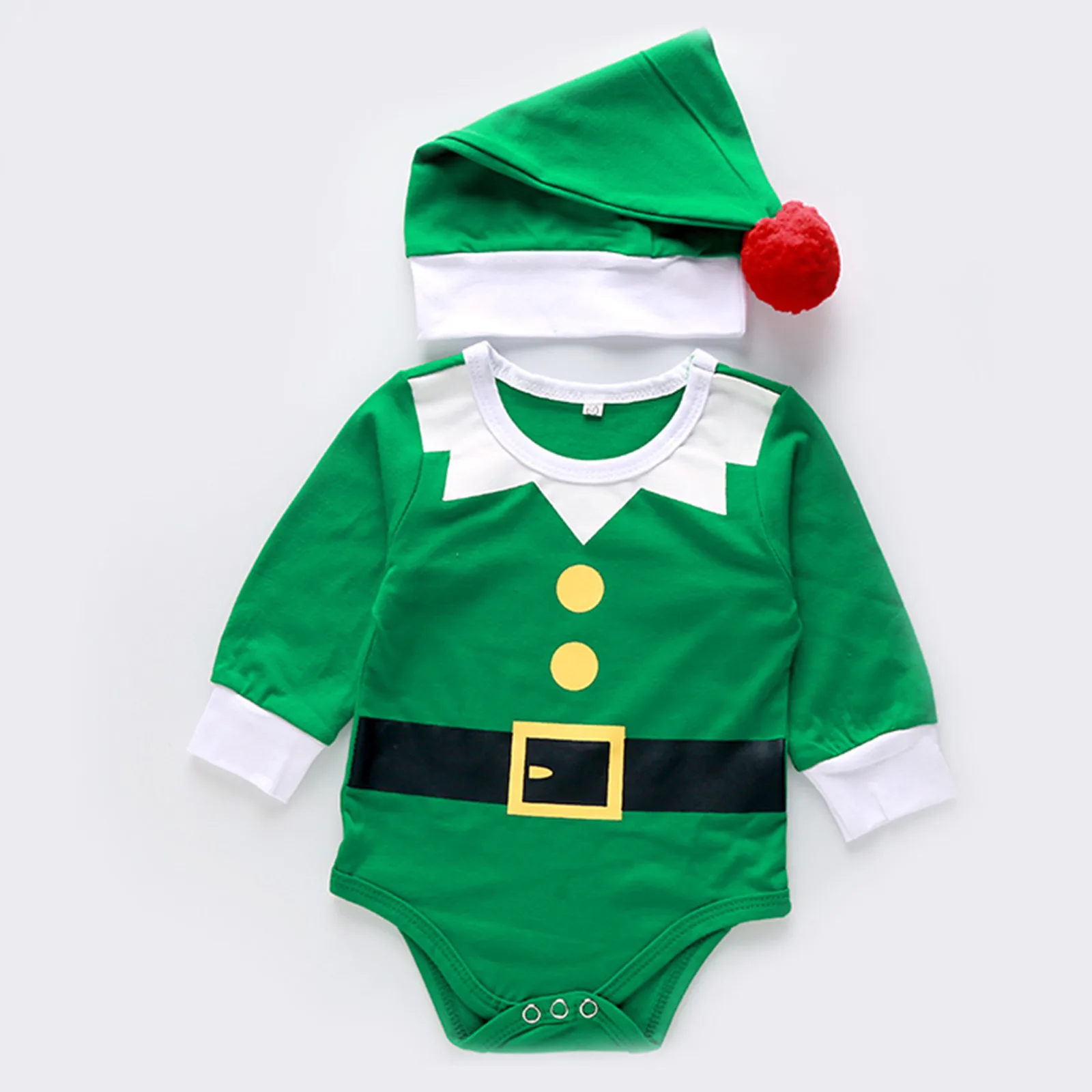 Одежда для новорожденных мальчиков и девочек Рождественская шапка с длинными рукавами и рисунком комбинезон игровой костюм одежда 3 6 12 18 месяцев