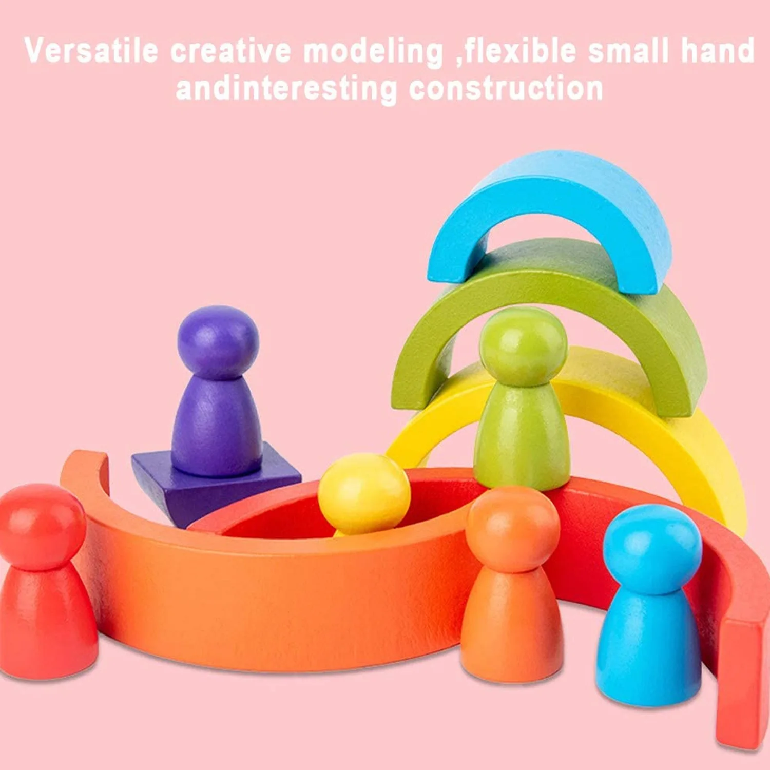 6 шт., деревянные радужные строительные блоки, укладка, гнездящаяся игрушка-головоломка, 6 шт., маленькие куклы для детей, подарок, Ранняя развивающая игрушка