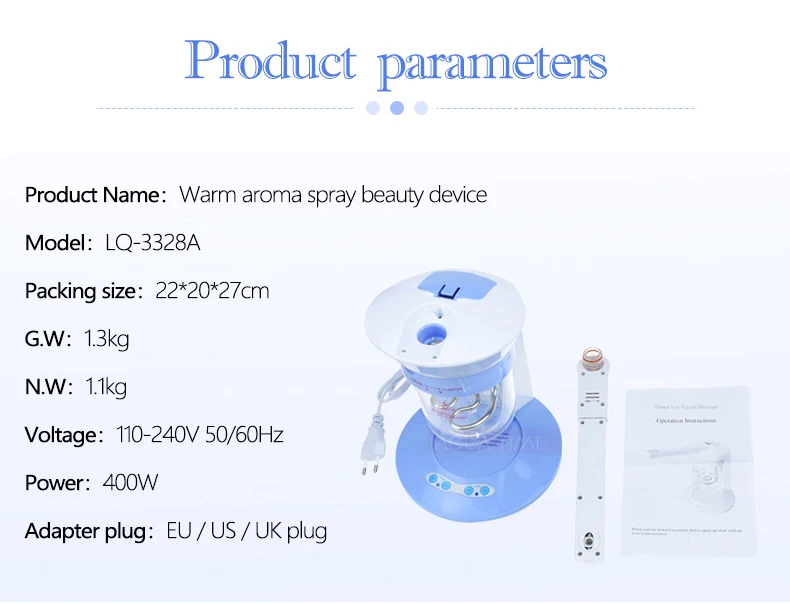 1 * отпариватель для лица 1 * Адаптер питания 1 * Руководство пользователя 1 * цветная коробка
