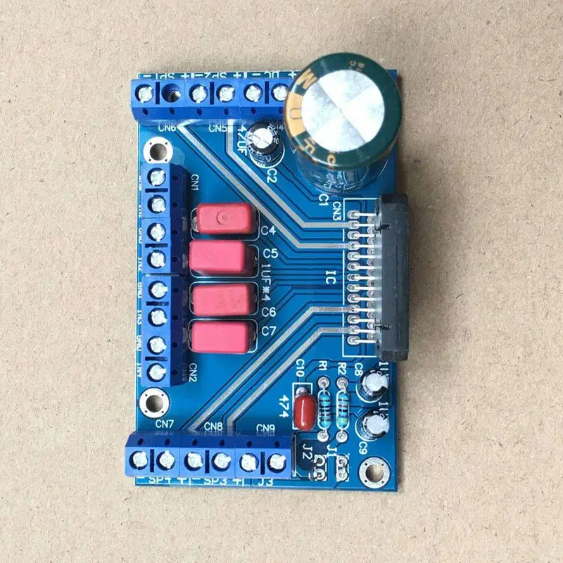 Производство четырехканального чипа IC используется в форме выход BTL, периферийный оригинальный полюс маленький, но отличное качество звука, установка также очень удобна, упаковано как 25-контактный двойной in-line.Power питания для постоянного тока 12В-14,5 В, этот продукт является четырехканальный модуль усилителя, наиболее распространенный дизайн схемы также очень согласуется с общим эффектом IC.