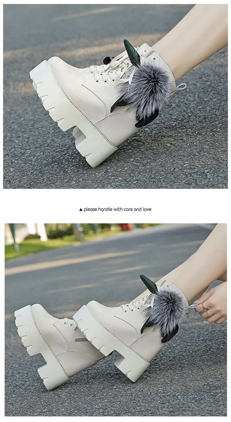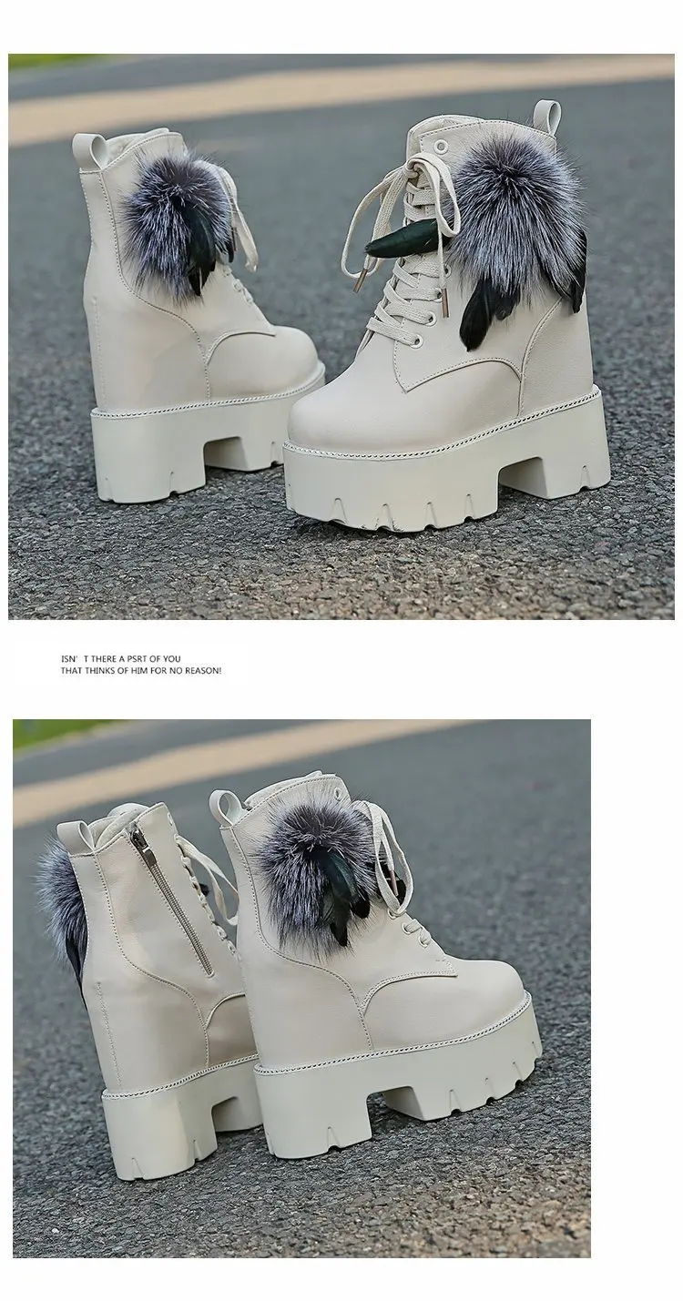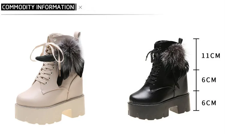Женские зимние ботильоны; 12 см; Теплые ботинки в байкерском стиле на высокой платформе с мехом; Кожаная обувь на высоком каблуке; Женские кроссовки; Сезон Зима; 2020