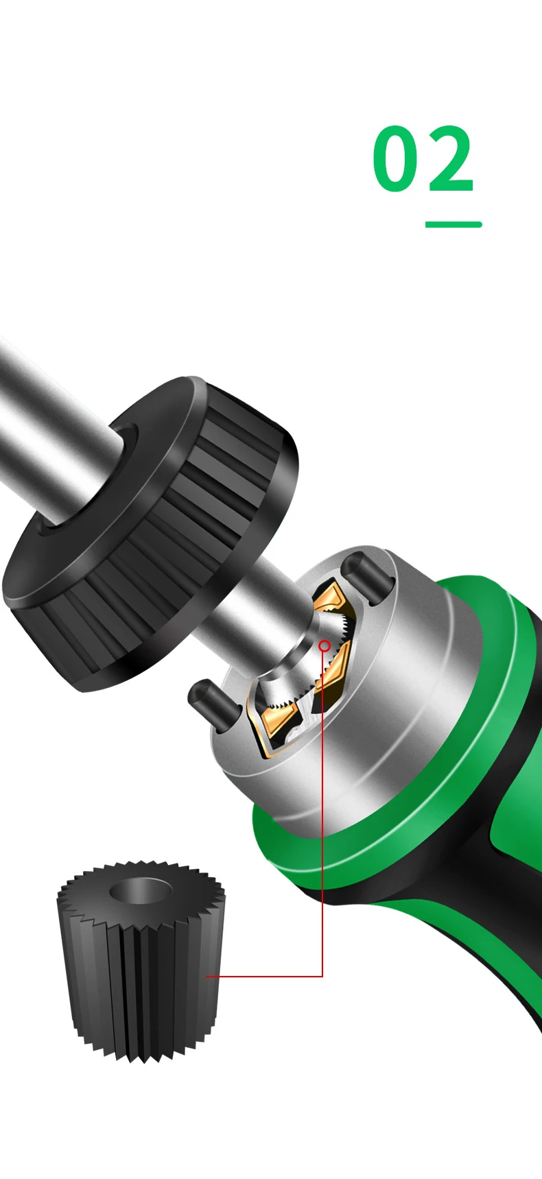 01 Встроенная партия головки: слегка нажмите, внутреннее ведро всплывает, и партия головы легко хранить и использовать 02 Ratchet структура: 48-зуб храповика центральная колонка, трудосберегающая тачка, трещотка выдерживает крутящий момент до 20N. М 03 сильная Магнитная Адсорбция: сильный магнит встроен в резак, который может быстро изменить бит. Сильный магнитный блок 04 вперед и назад дизайн: регулируемая трехскоростная функция, очень подходит для ослабления и затягивания винтов, вперед и назад с функцией храповика, экономичной работы. B храповик Реверсивный, подходит для ослабления винтов Трещотка C вращается вперед, подходит для затягивания винтов D Блокировка шестерни 05 трудосберегающая операция: храповое колесо можно вращать непрерывно в одном направлении без многократного изменения ручного положения Трещотка обратная B функция отвертки С трещоткой вперед