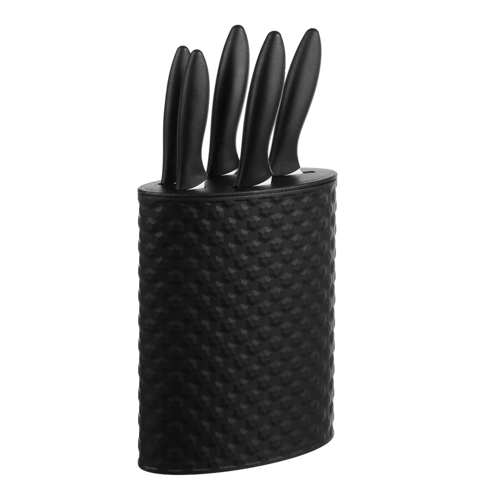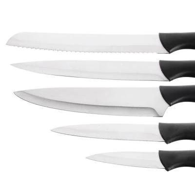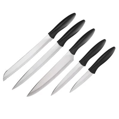Кухонный набор из 5 ножей с лезвиями из нержавеющей стали — универсальный помощник на кухне. Стальные аксессуары не боятся твердых продуктов и большого давления. Они выдерживают механические повреждения, удары.Кухонный нож из нержавеющей стали не испугаешь температурным шоком и кислыми фруктами. Материал не окисляется и не влияет на вкус продуктов.