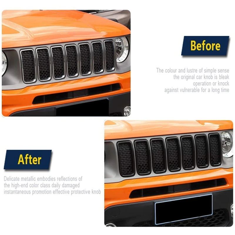 for Jeep Renegade 2019 2020 Front Grille Inserts, Exterior Accessories ABS Black 7 Pack