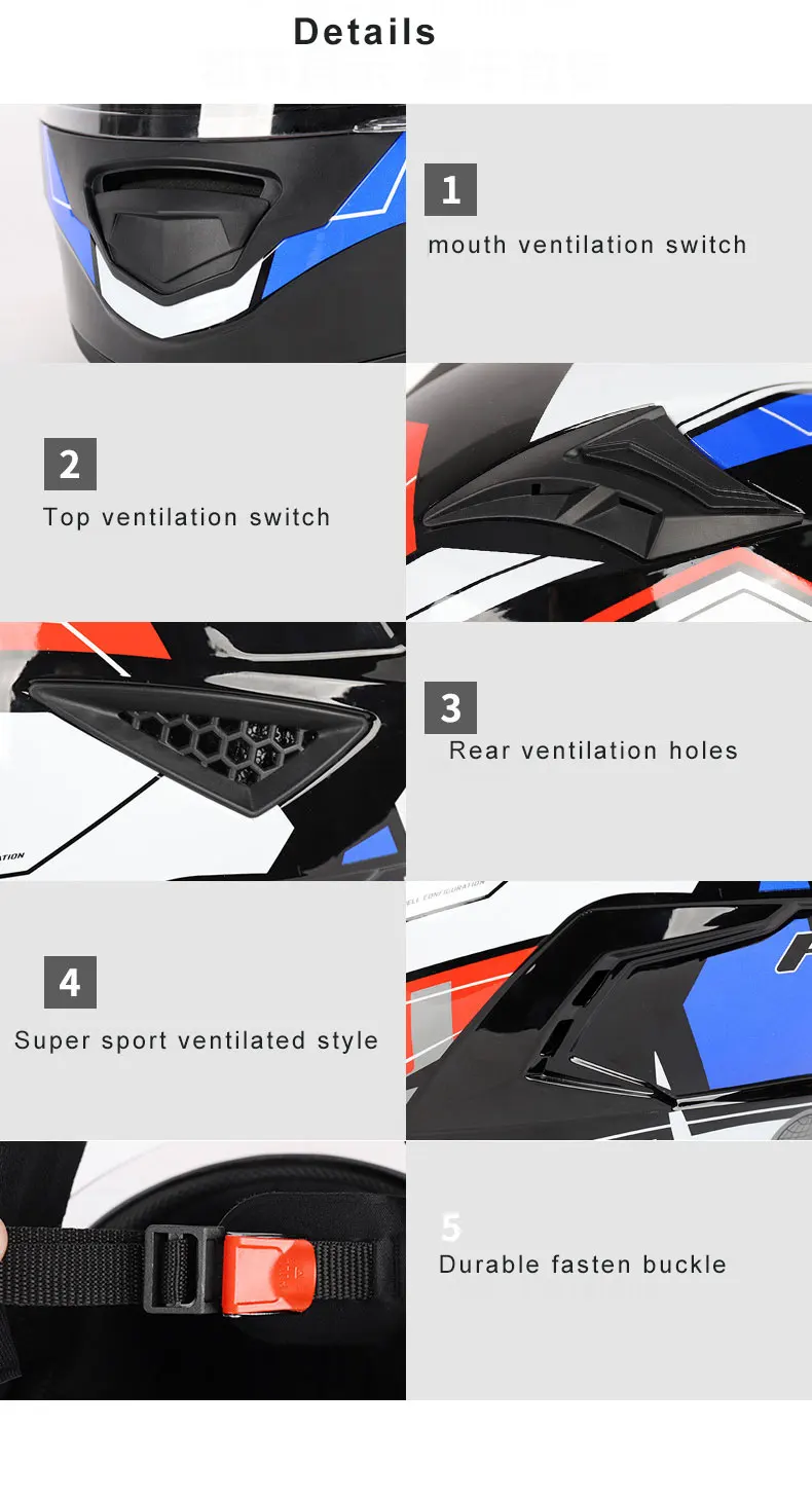 Полнолицевой шлем с прозрачными линзами, если вы разместите заказ, мы можем отправить вам бесплатно черные линзы 1. Можно изменить на черные линзы, оригинальный шлем с прозрачными линзами 2. Легко изменить объектив 3.HD против царапин козырек 4. Удобная подкладка 5. Хорошая система вентиляции 6. Непромокаемая прокладка на верхней части козырька
