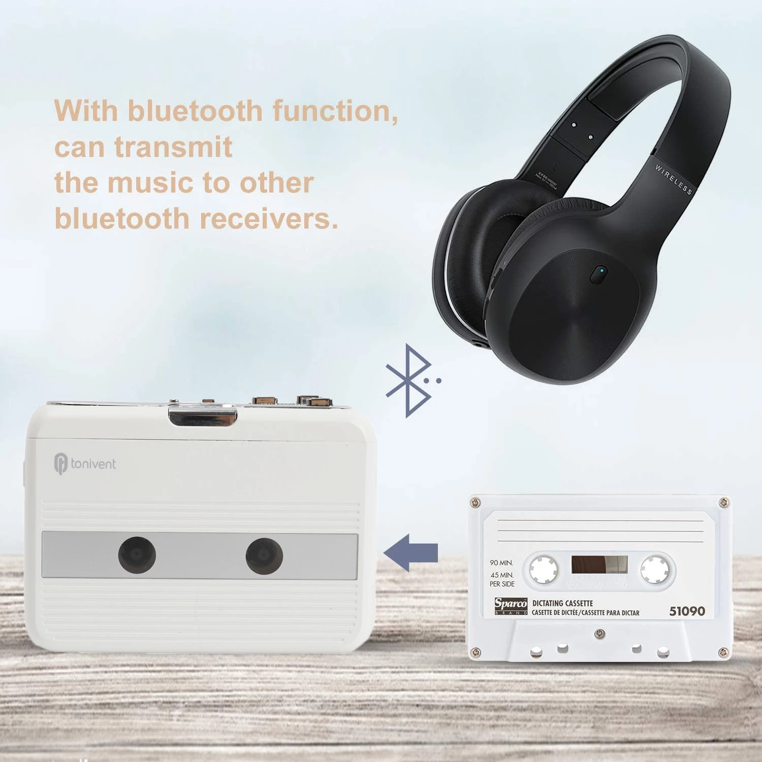 Используется как walkman, воспроизводит кассетную ленту везде. С функцией Bluetooth, можно передавать музыку на другие bluetooth-ресиверы. С функцией автоматического обратного хода Автомобильный fm-передатчик зарядное устройство может принимать радио (с 3,5 мм наушники в качестве антенны) 3,5 мм разъем для наушников