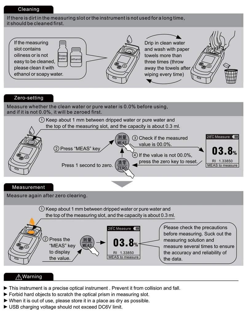 3. Разрешение мощности: Brix 0.1%; Температура: 0,1 ℃