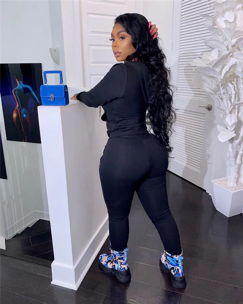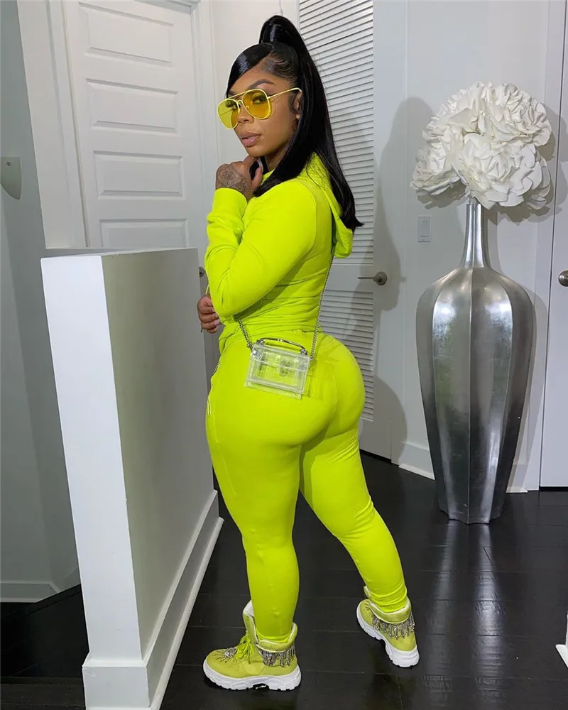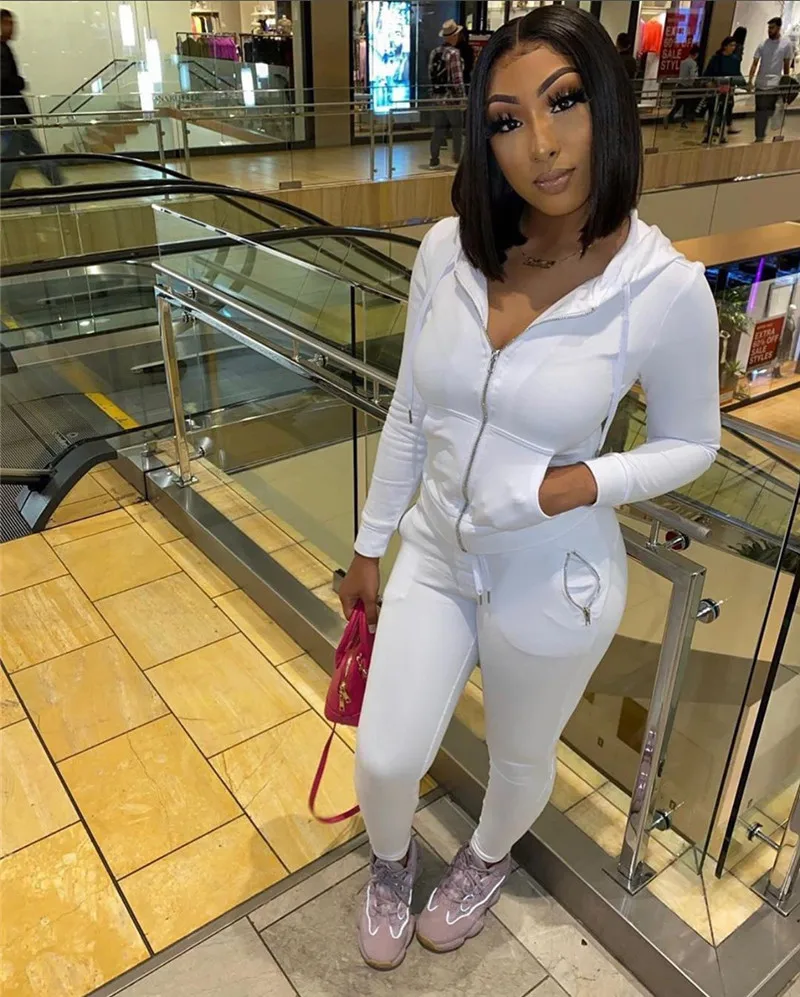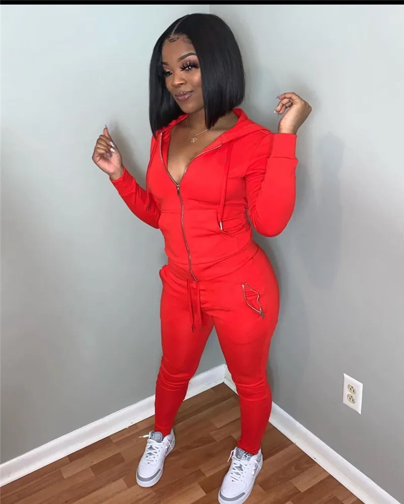 Женский трикотажный костюм на молнии Adogirl, однотонный спортивный костюм из двух предметов с длинным рукавом и капюшоном, топ, брюки-карандаш, одежда для бега