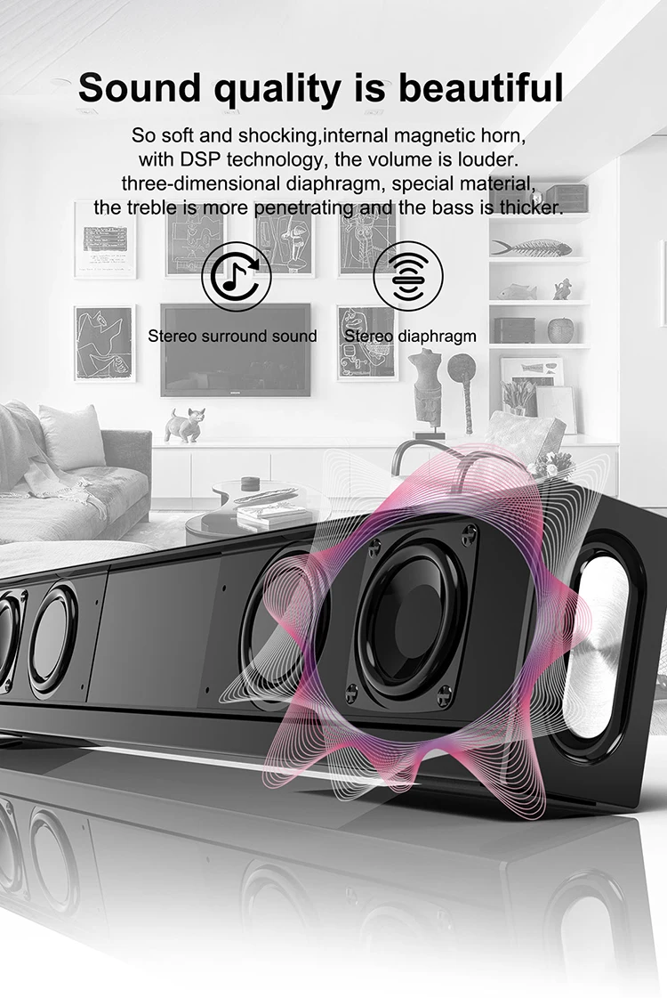 Портативный ТВ Bluetooth динамик 4,2 20 Вт супер бас 3D объемный динамик s поддержка TF,FM, аудио, пульт дистанционного управления для телефона громкий динамик