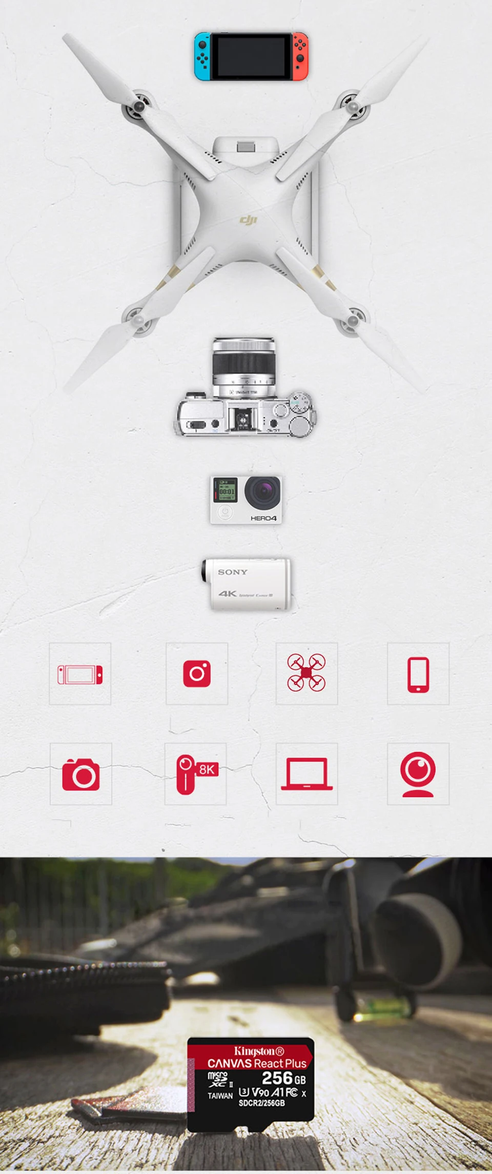 Kingston Canvas React Plus microSD карта обеспечивает надежный и прочный производительность для профессионального материал съемки блестящей 4K/8K видео и фотографии с высокой разрешающей способностью без необходимости беспокоиться о том, что выпадения кадров и медленной скорости. Разработан с учетом последних UHS-II стандартов и топ-линией U3 и V90 классах скорости, полотно реагируют плюс карты Micro-SD объемом совместимы со стандартными профессиональный HD беспилотных летательных аппаратов и экшн-камер. Снимать последовательного серийной снимки с возможностью записи скорость до 165 Мб/с и пульт дистанционного управления для съемки видео в ультра-HD кинематографического качества. Полотно реагируют плюс карты памяти microSD карта поддерживает A1 производительности приложений класса для того, чтобы ускорить ваш рабочий процесс с более высокой производительности приложений на смартфоны И планшетов. Он поставляется в комплекте с Kingston MobileLite плюс microSD считыватель штрих-кода с скоростью передачи данных до 285 Мб/с, гарантируя быструю расширения процесс постпроизводства и эффективность, А также карты памяти microSD карта адаптер.