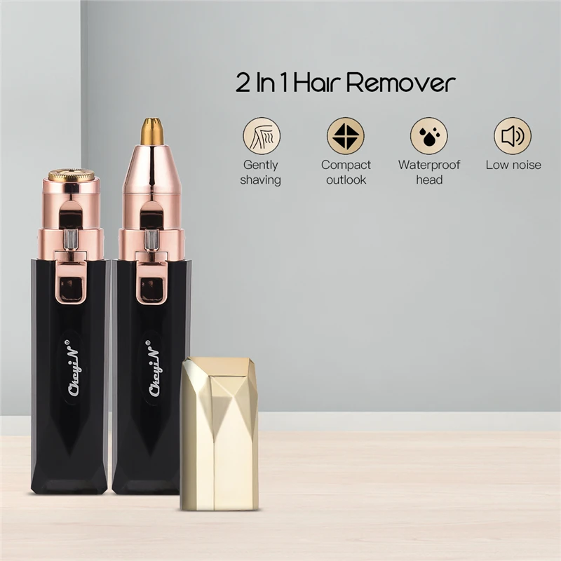 1.【 дизайн 2 в 1 разработан со сменной головкой, оснащен 2 головками. Один для утонченного обрезки бровей, другой для более широкой области подравнивания волос.