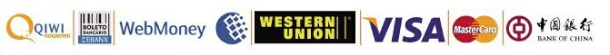 Мы принимаем все платежи, как показано ниже. Если у вас есть какие-либо вопросы по оплате Пожалуйста, свяжитесь с нами в любое время.
