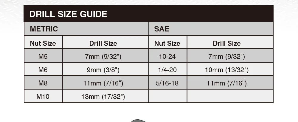 7 различных основных оправок и наконечников: M5, M6, M8, M10, 10-24, 1/4-20, 5/16-18