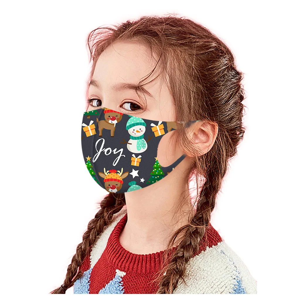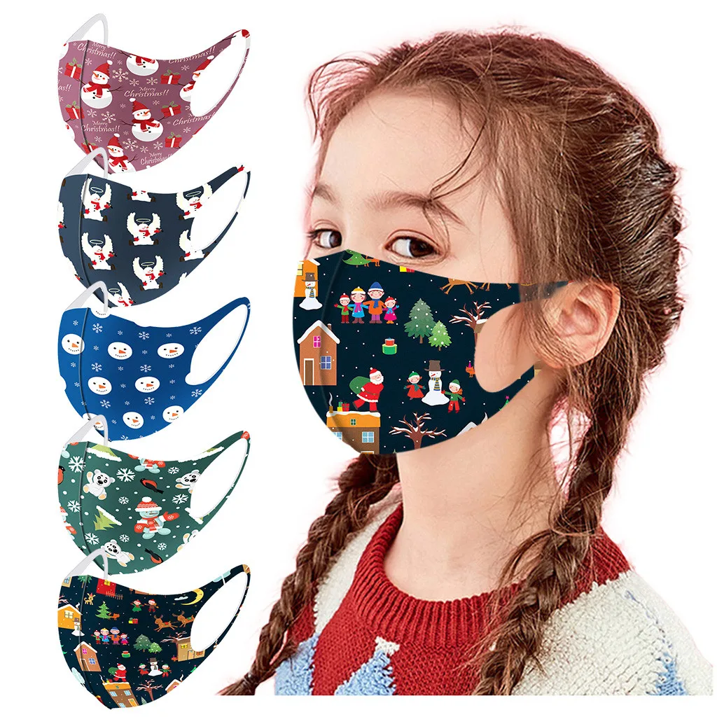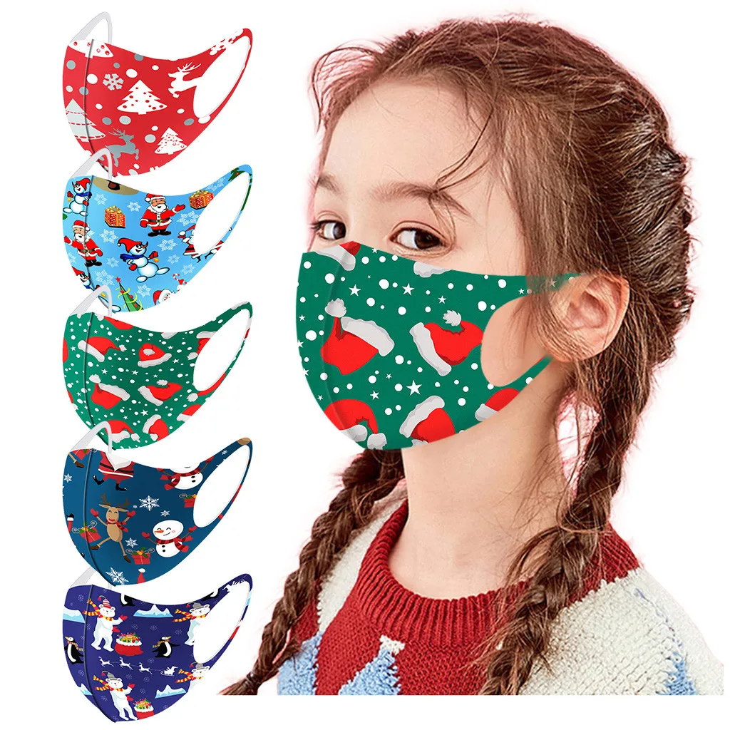 Детские 5 шт моющиеся модные рождественские маски для лица с принтом многоразовые пыленепроницаемые маски