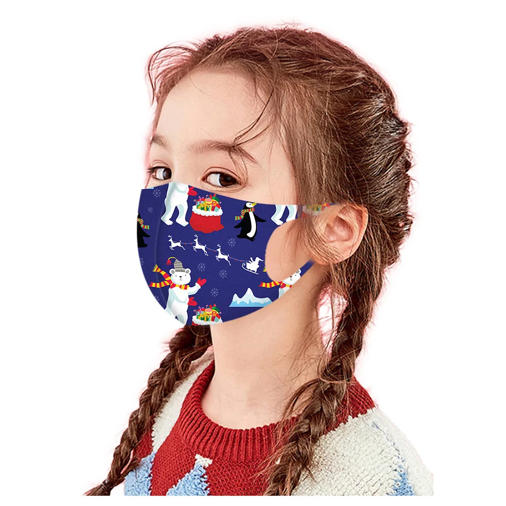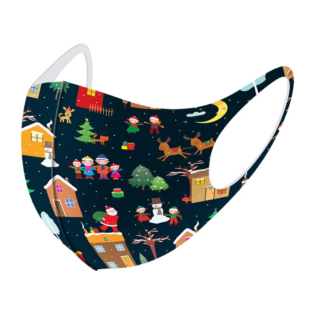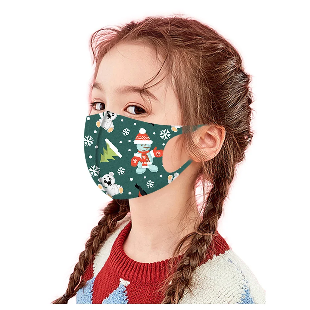 Детские 5 шт моющиеся модные рождественские маски для лица с принтом многоразовые пыленепроницаемые маски
